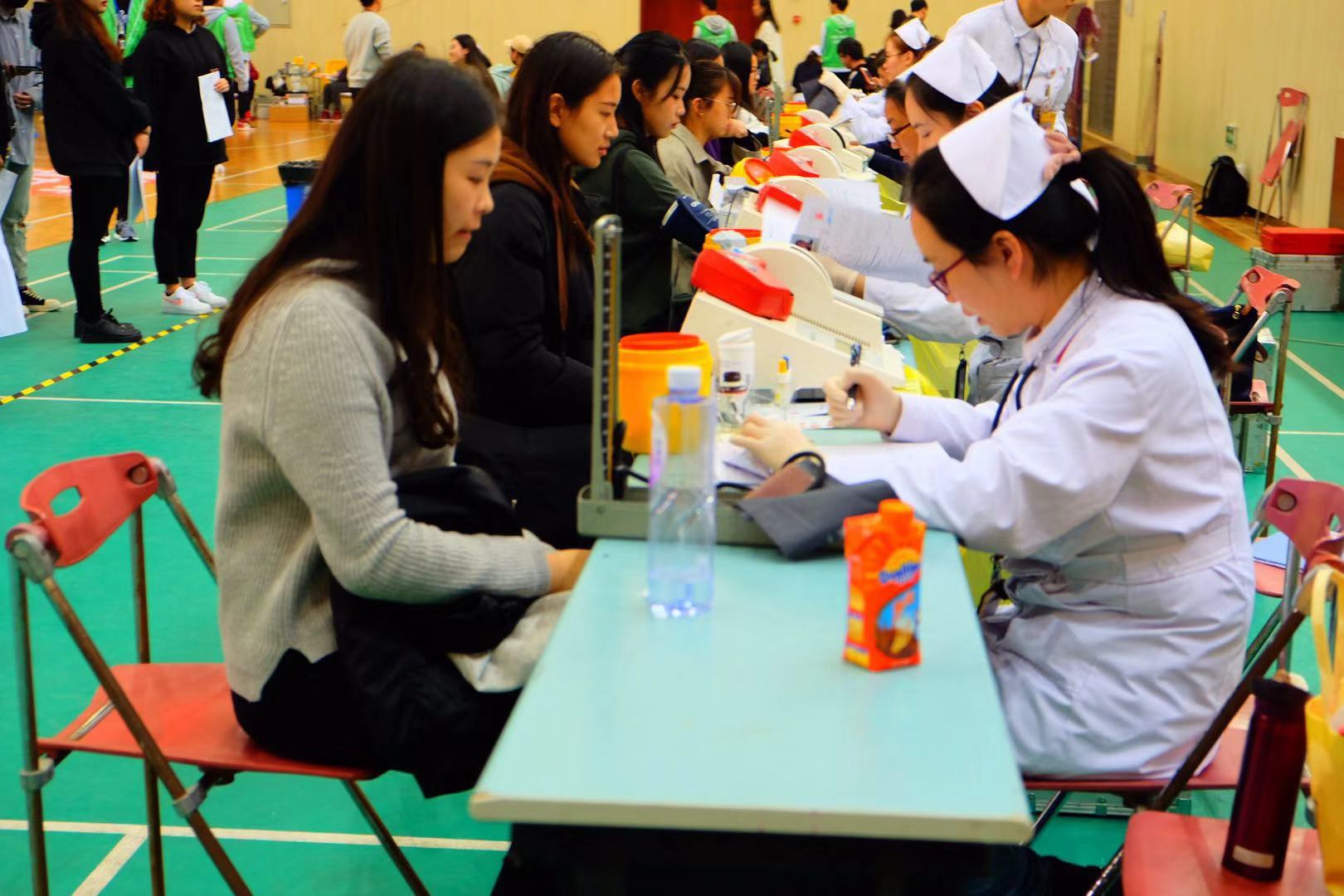11月22日下午,高职学院115名学子在体育馆参加了献血活动。学院党总支副书记潘明芸和辅导员们亲临现场,慰问各位献血者。