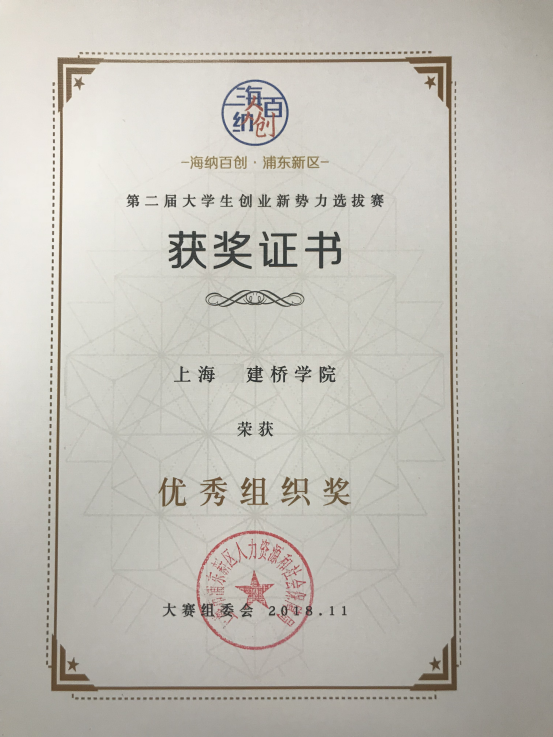 大学生创业新势力大赛,历时3个月,自9月1日正式启动以来便以“创业点亮梦想”为主题,聚焦青年大学生创新精神,培育浦东校园创业文化,挖掘浦东新区创业新苗,树立浦东新区创业典型,推动社区、园区、校区三区联动,10月1-11日参赛选手参加系统培训活动,经过10月12日初赛评审,10月20日综合能力展示和决赛评审。最终,我校“鸵鸟兼职”团队、“仓建运营”团队荣获“十佳”创业新势力奖、“它说”团队荣获优胜奖、上海建桥学院荣获优秀组织奖,我校就业办王苇老师以上海市创业指导专家志愿团浦东分团委员的身份应邀出席。