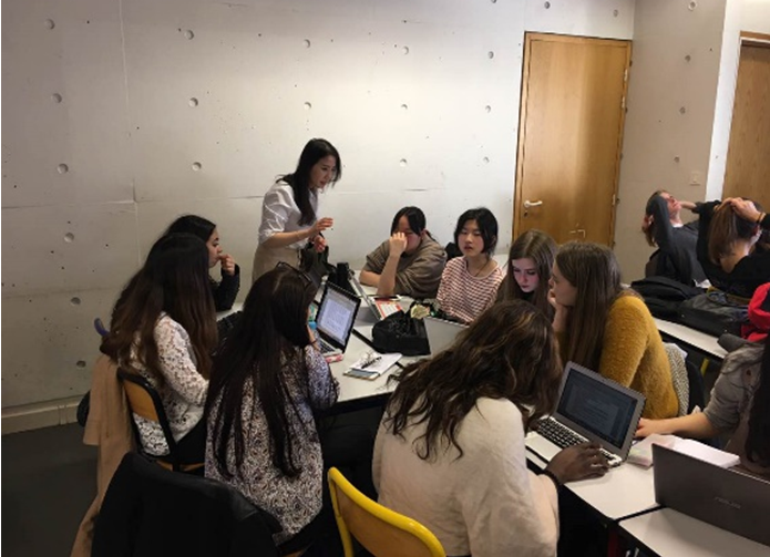 (2017年3月,支颖雪及万元老师前往法国南锡商学院进行四天的国际周教学,讲授《中国奢侈品市场及中国消费者行为》课程,选课系统开放两个小时内就被选满。)