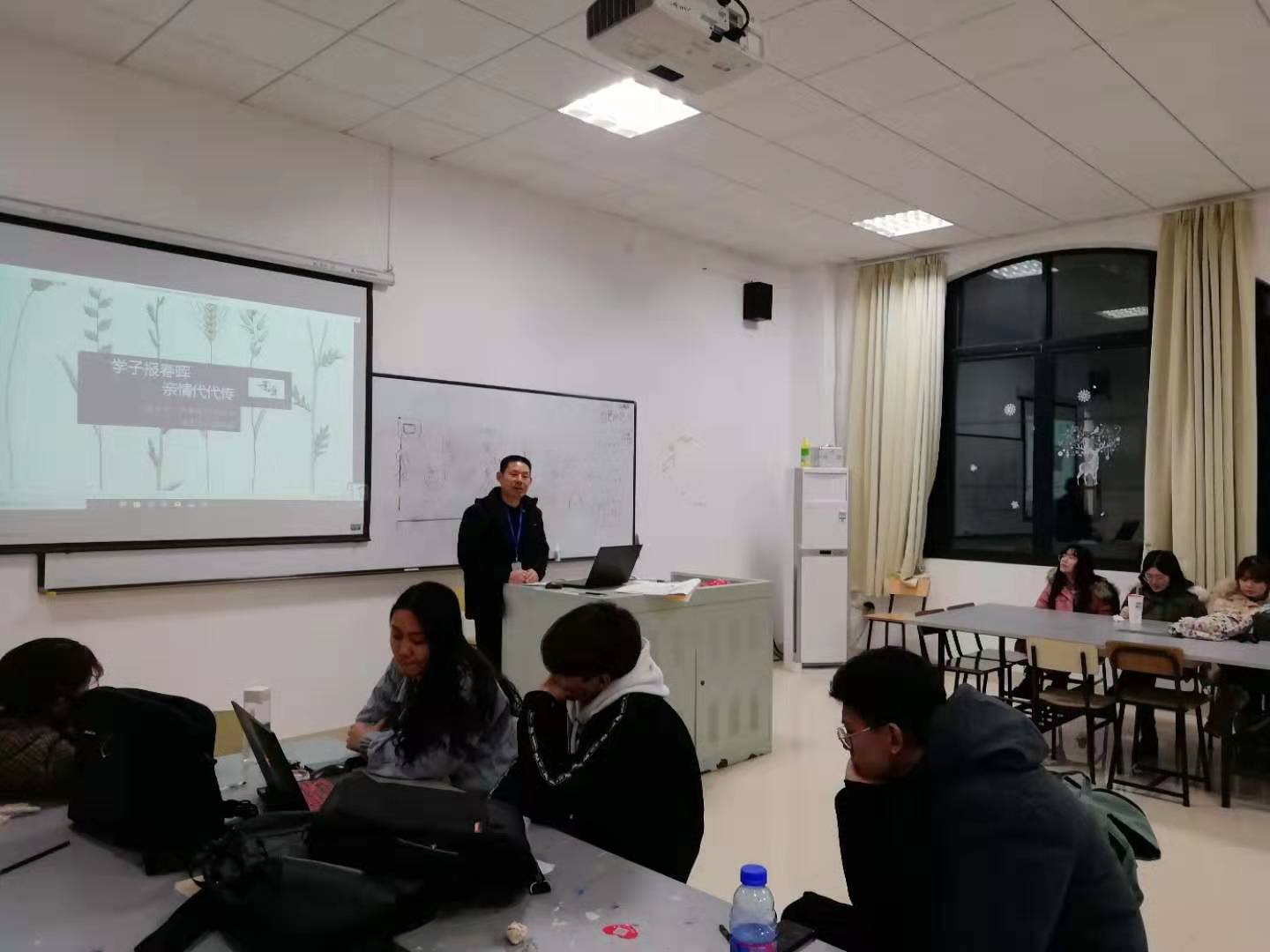 会上同学们以视频、图片、文字和现场演说的形式汇报了寒假期间的所思、所做、所悟。演讲同学语言朴实、情真意切,大家感同身受、纷纷发言,有的同学流下了感动的泪水,有的同学现场给父母发了微信视频,向父母报平安、道祝福。辅导员卞老师希望大家感知父母恩,激扬青春、慎思勤勉、奋发学习;以优异的成绩回报父母,回报学校,回报社会;树立共产主义事业的远大理想,努力成为一名社会主义事业的合格建设者和可靠接班人。