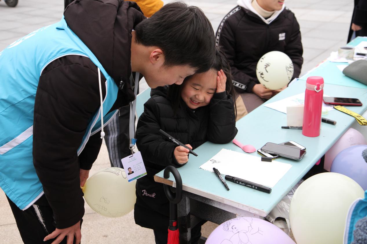 活动当天,天气阴沉,风也很大,但志愿者们的热情丝毫没有受到影响。下课时分,雷锋像前就聚集了一群感兴趣的同学,一些志愿者根据每位同学的要求为他们设计了卡通头像,还有部分志愿者将Q版雷锋形象画在气球上送给来往的同学。此外,三名可爱的人偶志愿者也为本次活动添光溢彩,他们在活动地点周围的走动,起到了良好的宣传作用。