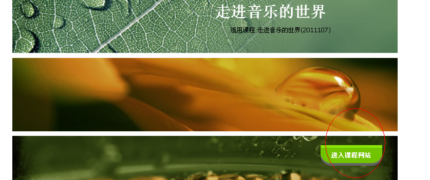 五、浏览课程网站:这是点击浏览“走进音乐的世界”后出现的界面,同学可点击“进入课程网站”进入该课程的网站,浏览网站的学习要求、学习内容,并对心仪的课程进行选择、注册。
