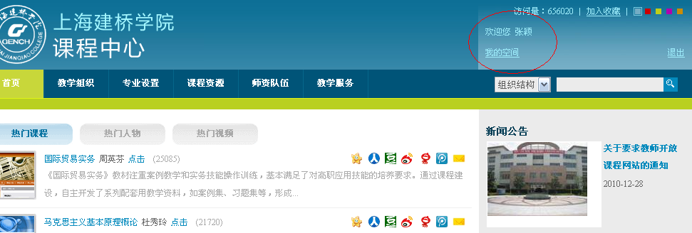 二、登陆后界面上会出现“我的空间”:登录后点击“我的空间”进入下一个界面。