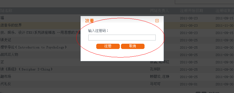 六、注册:这是选中某一门课程并点击注册后出现的界面,所有课程的注册码均为6个1。注册之后等待教师验证,验证之后即可开始学习。所有课程的注册截止时间为3月22日。