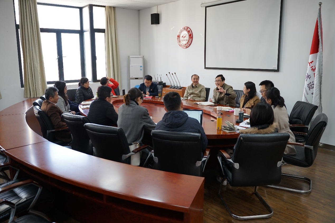 在调研会上,朱校长对我校2019年工作要点、二级学院KPI考核指标及学校迎评工作进行了介绍。朱校长表示,此次审核评估是在全面贯彻落实“全国教育工作会议”和“新时代全国高等学校本科教育工作会议”精神的大背景下,通过开展教育教学思想大讨论、德育教育、雷锋文化等引领,以四个回归,营造全员重视教学的良好评估氛围;针对诊断评估及校内自评检查的相关意见,做好整改落实工作。他强调,学院在撰写自评报告中,要了解结构、熟悉内容,并把自评报告与学院的实际情况结合起来,从而对评估工作有所支撑。评估事关我校“应用技术型本科”建设,对学校的持续发展影响深远,二级学院一定要充分认识到审核评估的重要意义。