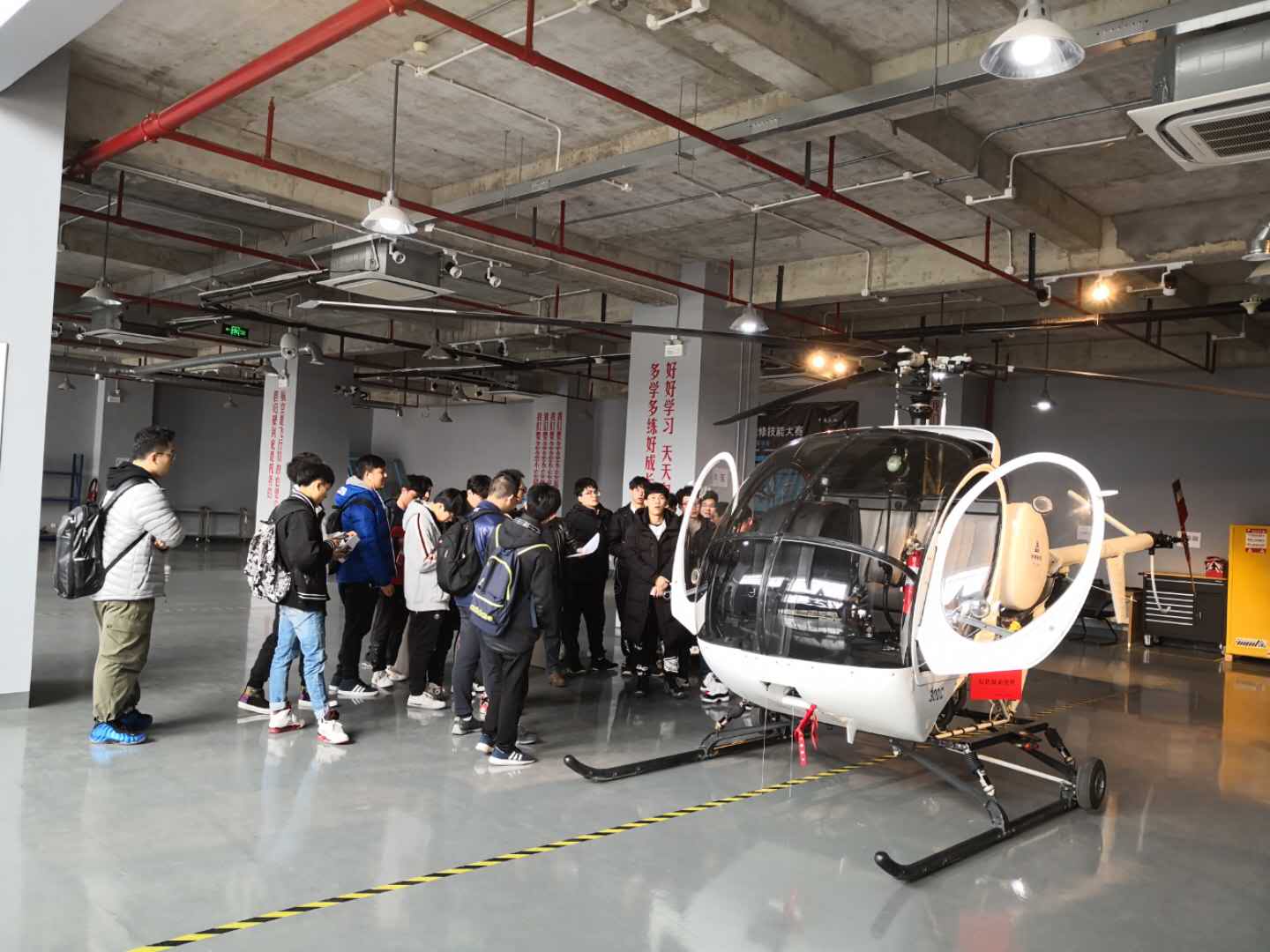 本次参观累计6个小时,共包含两个环节。首先,总工程师郭鹏飞先生为学生讲解航空基本知识、我国航空的发展历史和前景、行业人才需求,以及目前国内外航空领域资格证书体系。讲座中,郭鹏飞重点强调了民用航空中“安全”永远是第一宗旨,并指出航空维修人员的诚信理念和工匠精神对维护航空安全的重要性。随后,维修经理为学生演示航空维修的专业工具及使用方法,并结合现场的直升飞机讲解了飞机构造原理及航空维修人员的工作内容。