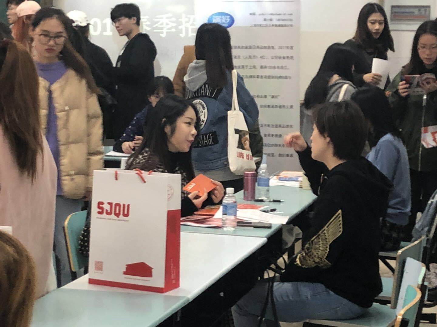 参加本次招聘会有20余家公司,其中包括上海庭祥建筑装饰设计有限公司、上海黄浦区东方童画培训学校、上海聚通装饰集团有限公司、上海海昌极地海洋世界有限公司等,其中多家为我院的校企合作单位。招聘企业提供了品牌设计师、漫画设计师、平面设计师、美术教师等共计200多个岗位。本次招聘会为大四学生提供了多元实习、就业机会,大三学生积极参与,提前了解市场需求,为明年的就业做充足准备,本次参会学生人数大约300人。