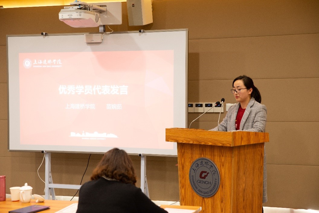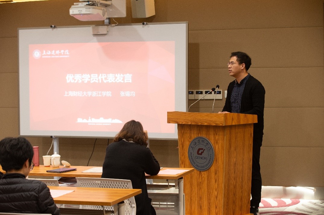 随后的结业典礼上,为各位参训学员颁发了结业证书,并对优秀学员进行了表彰。来自上海建桥学院的苗婉茹、上海财经大学浙江学院的张锡均老师作为优秀学员代表发言,他们表示在此次培训中收获颇丰,并对本次培训表示感谢。