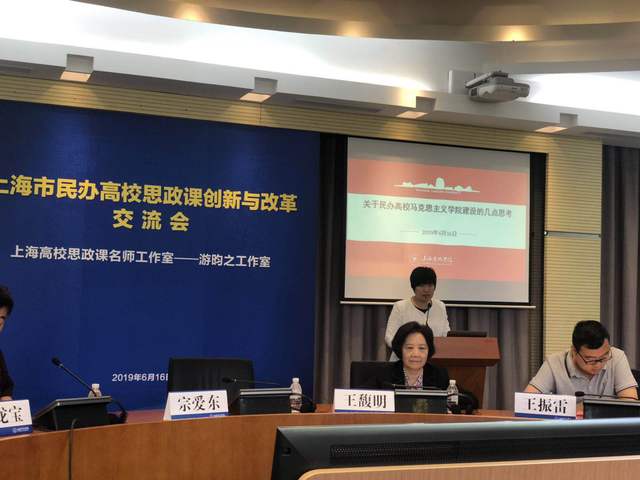 6月16日,马克思主义学院常务副院长宋艳华、马院教师李兰参加由上海市思政课名师工作室——游昀之工作室主办的上海市民办高校思政课创新与改革交流研讨会。