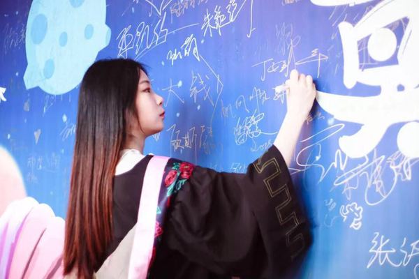 典礼伊始,全体起立奏唱国歌,随后,在热烈的掌声中,学位授予仪式正式开始,校院领导、老师为毕业生们拨穗并颁发学位证书。微笑、握手、拨穗、合影,每一个瞬间都将成为毕业学子们成长中的难忘时刻。紧接着,15级环境设计专业汤敬同学作为毕业生代表发言,她希望同学们能够始终有改变的决心、创新的意识、担当的信念、冷静的头脑,始终有所热爱、有所期待、有所敬畏,懂得感恩回报母校。随后,毕业生代表孙依婷和陈吴頔同学代表全体毕业生为学院送上毕业纪念礼物——“I love AD”字样的长椅。