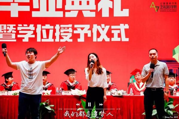 夏至刚过,蝉鸣绿荫。6月29日中午,艺术设计学院毕业典礼暨学位授予仪式在学校大礼堂拉开帷幕。出席本次典礼的领导与嘉宾有副校长俞晓光、董事张家钰、院长葛洪波、党总支书记周智明、党总支副书记王丽佳。各系办主任、专业教师、辅导员、部分毕业生家长以及全体2019届毕业生参加典礼。副院长孙鹏主持。