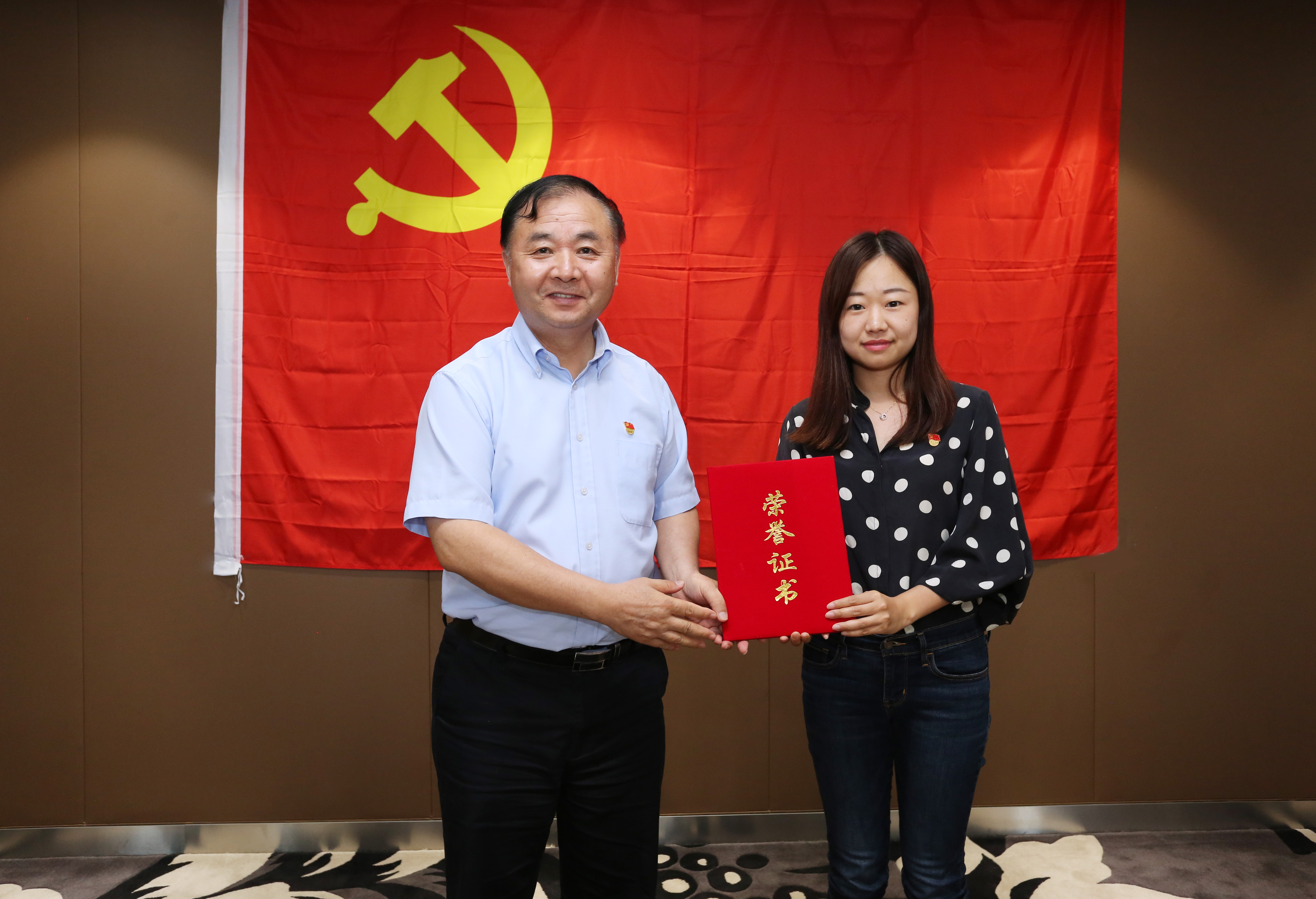 (校党委书记江彦桥为市教卫工作党委系统优秀党务工作者王晨岑颁奖)