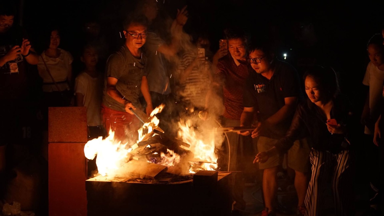 师生一同体验坑烧