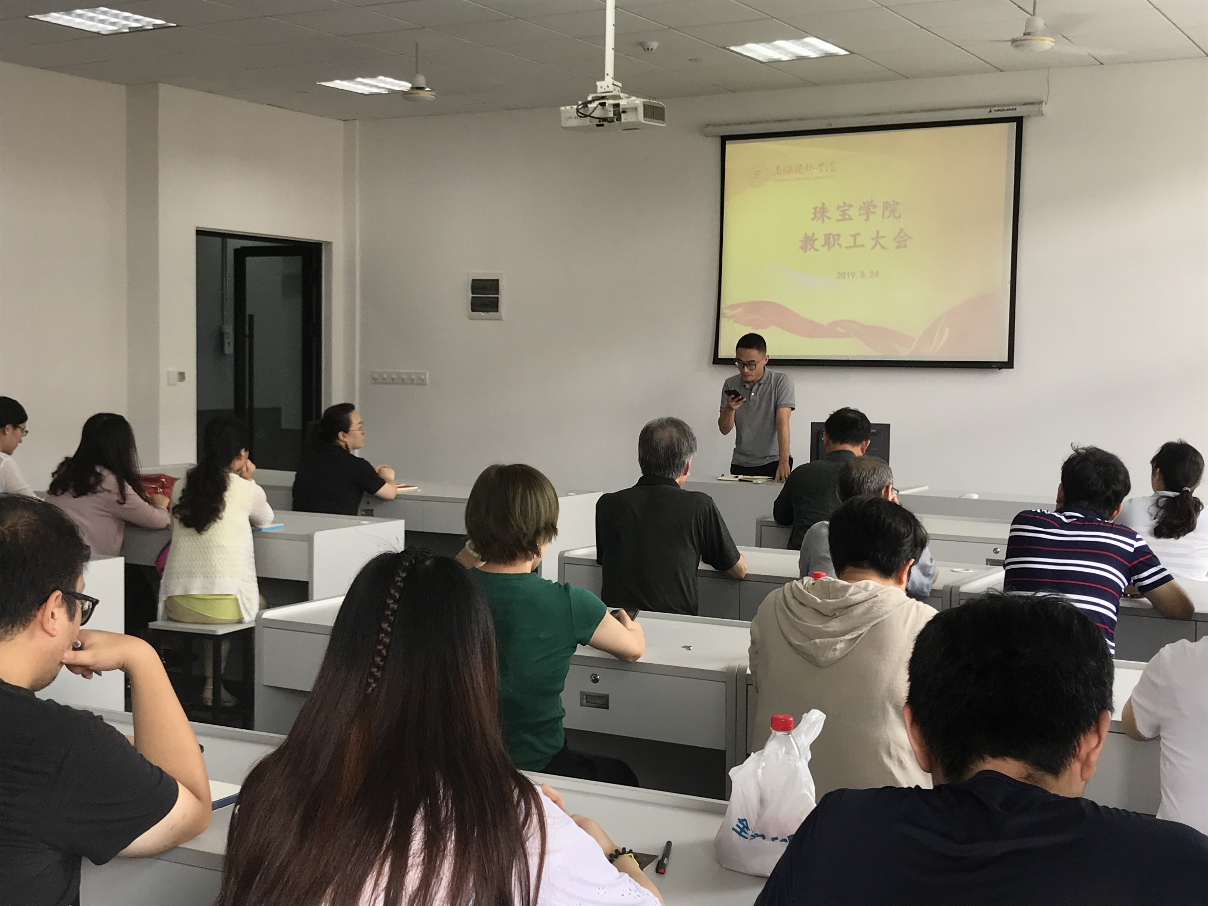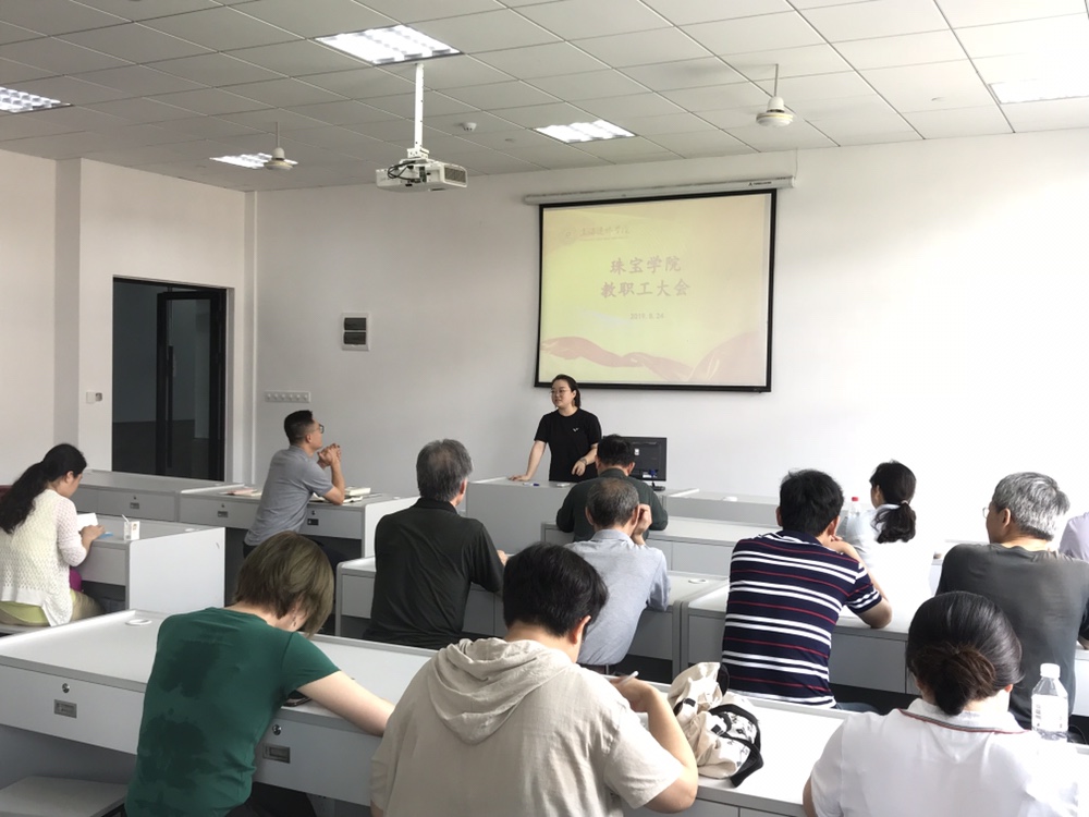 8月24日上午,珠宝学院召开全体教职工大会。万庆华书记主持会议,副院长刘衔宇、赵靖娜,副书记张晓寅等出席,学院全体教职工参加。