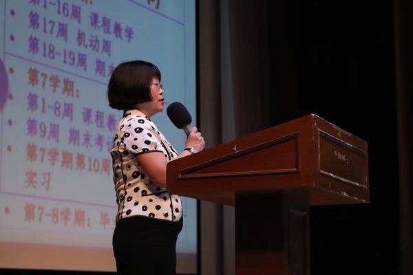 副院长周英芬为家长详细介绍了各专业,包括本科生培养计划、专业特色以及科研成果等,并详细解读了学生毕业和学位条件。