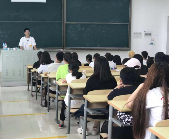 图为原商英16-1班陈子硕校友为商英19-1新生讲座现场