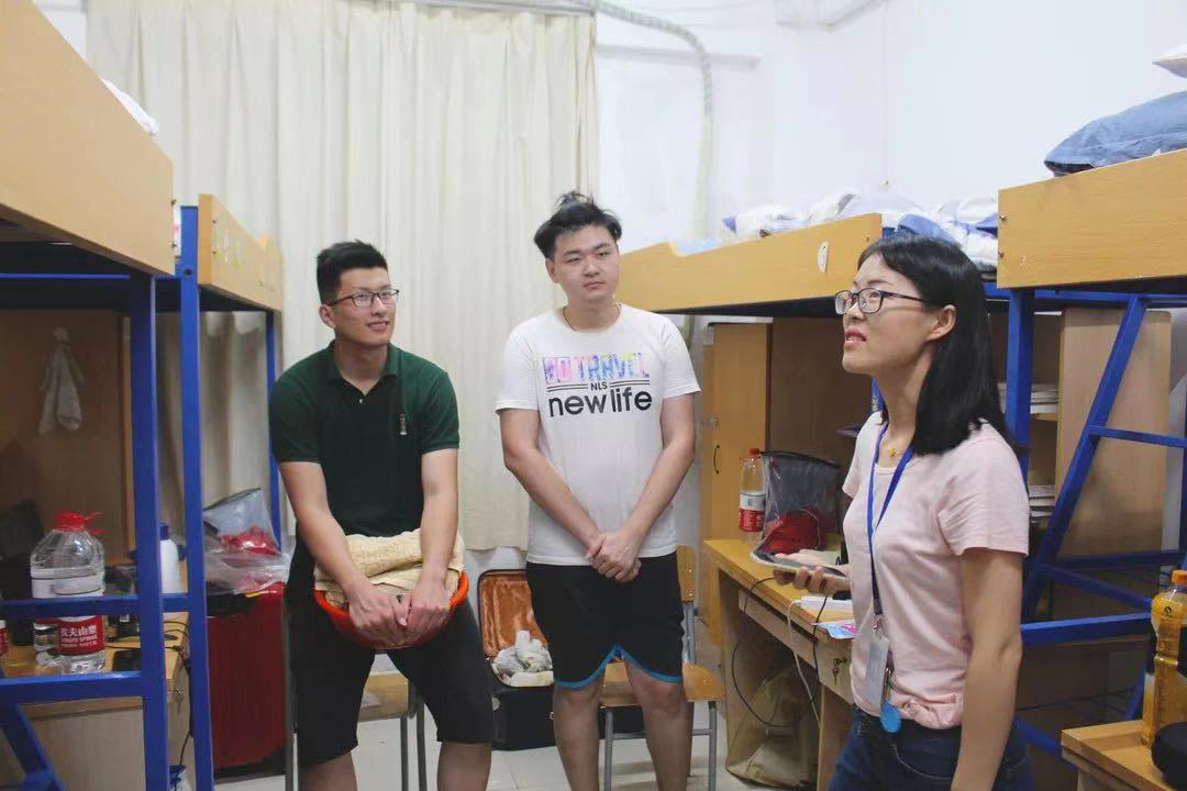 报到当日,学院即组织辅导员老师、辅导员助理下寝室活动,关切新同学的饮食起居。一句句叮咛,一丝丝关切,彰显了建桥的情怀,学院的温暖。