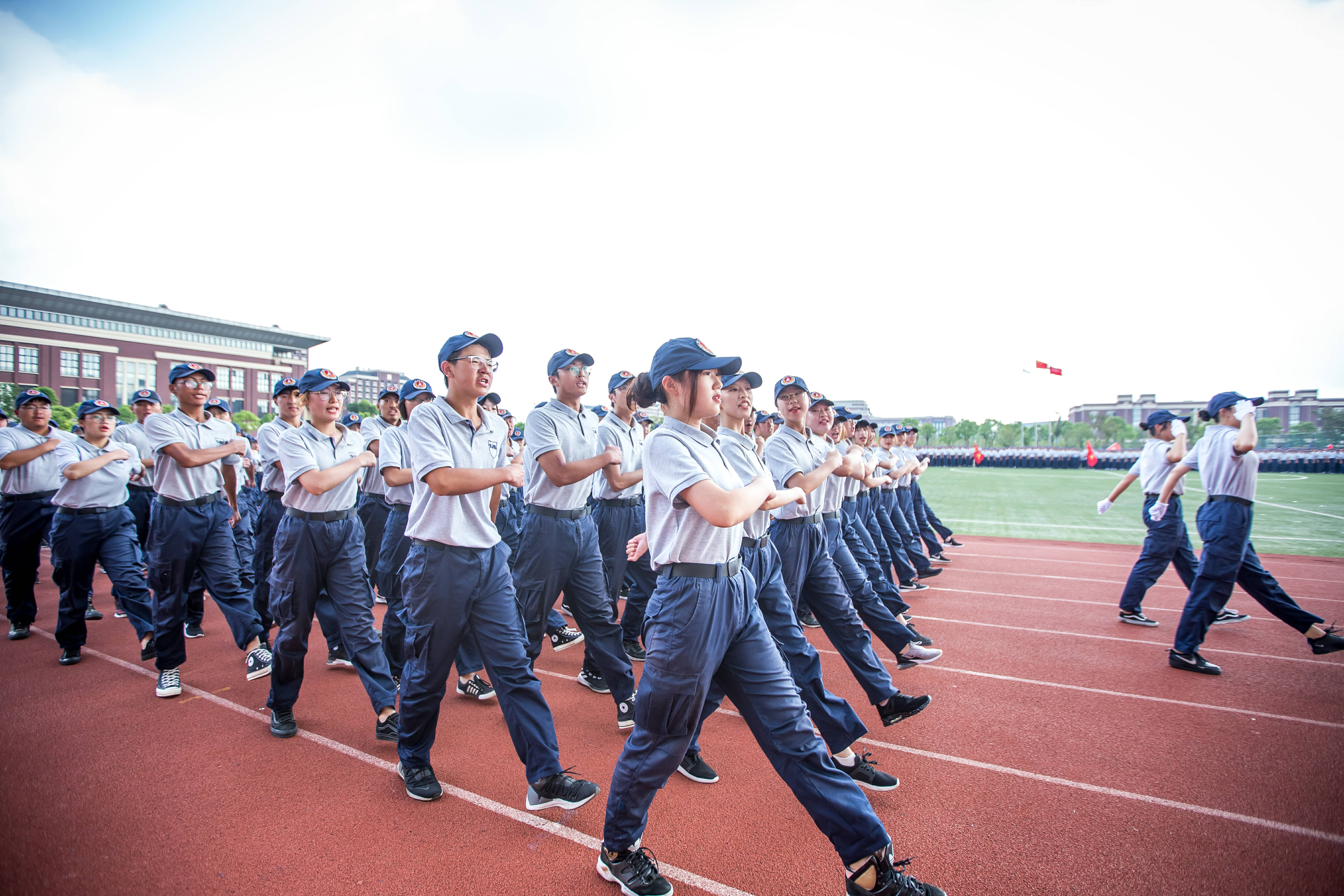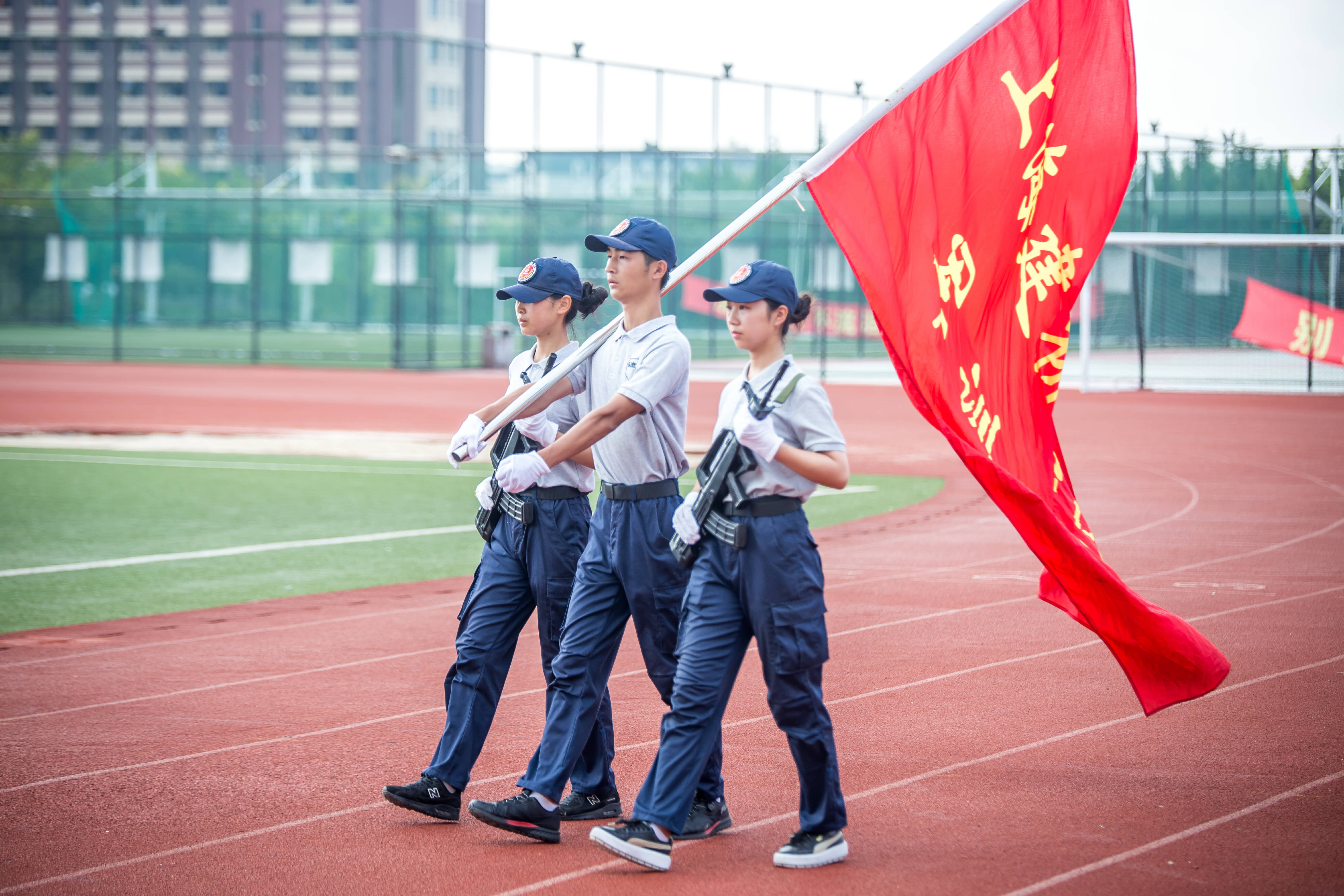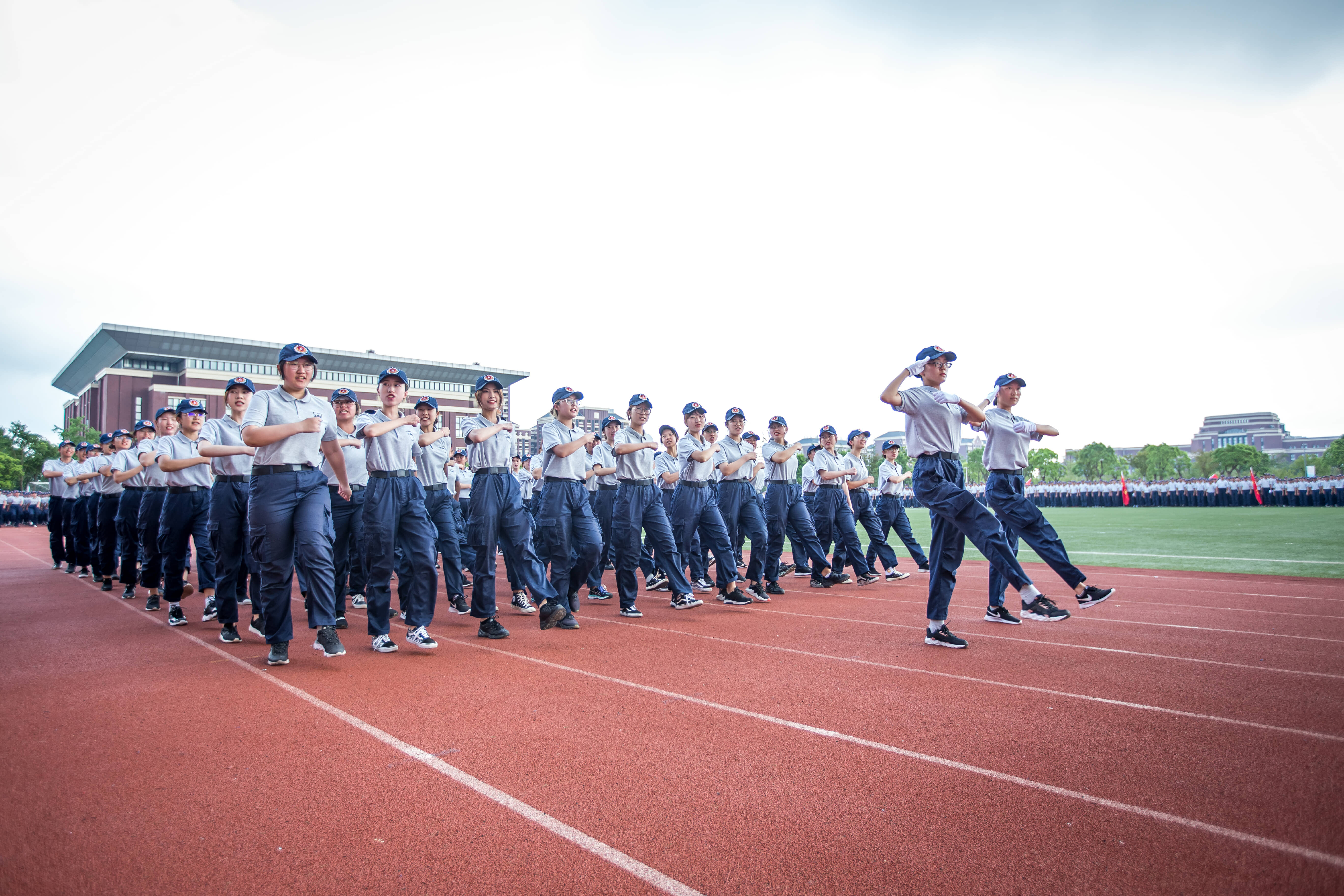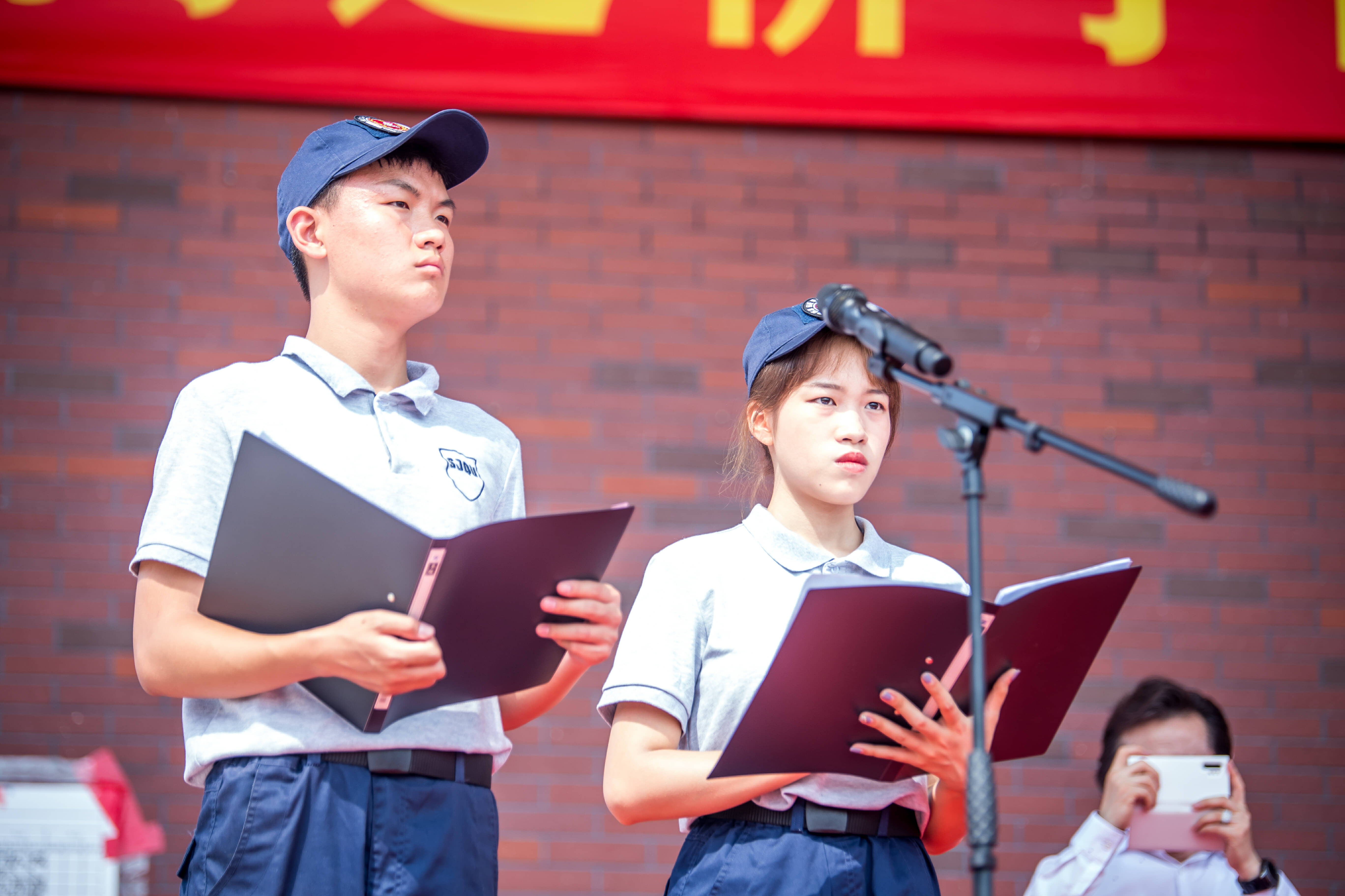 大会在庄严的国歌声中拉开帷幕。首先进行的是迎旅旗仪式,迎旅旗后,校长朱瑞庭宣布阅兵仪式正式开始。标兵就位、分列式,激扬向上的口号,整齐划一的步伐,受检阅方正依次正步从主席台前走过,他们英姿飒爽的身姿,矫健有力的步伐,展现了新时代建桥学子良好的风貌。军训汇报表演环节,学员列式展演军体拳、匕首操,昂扬的斗志、勇猛的气势,展现了军人般的血性虎气。