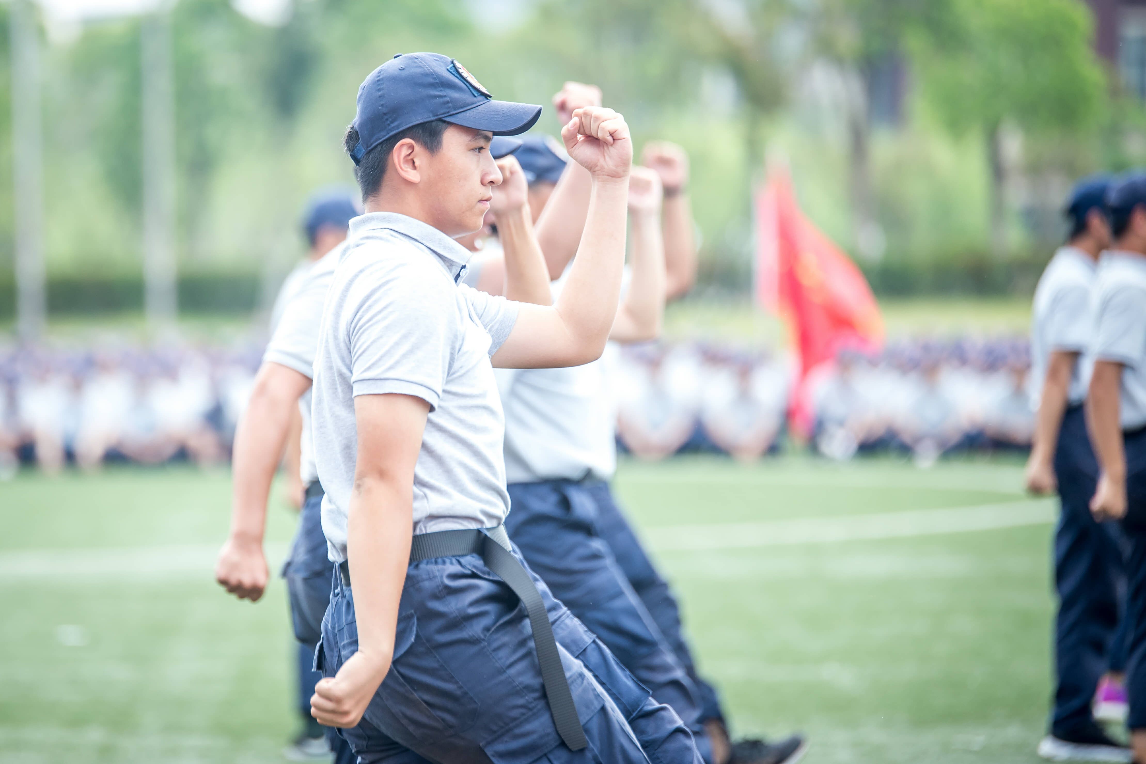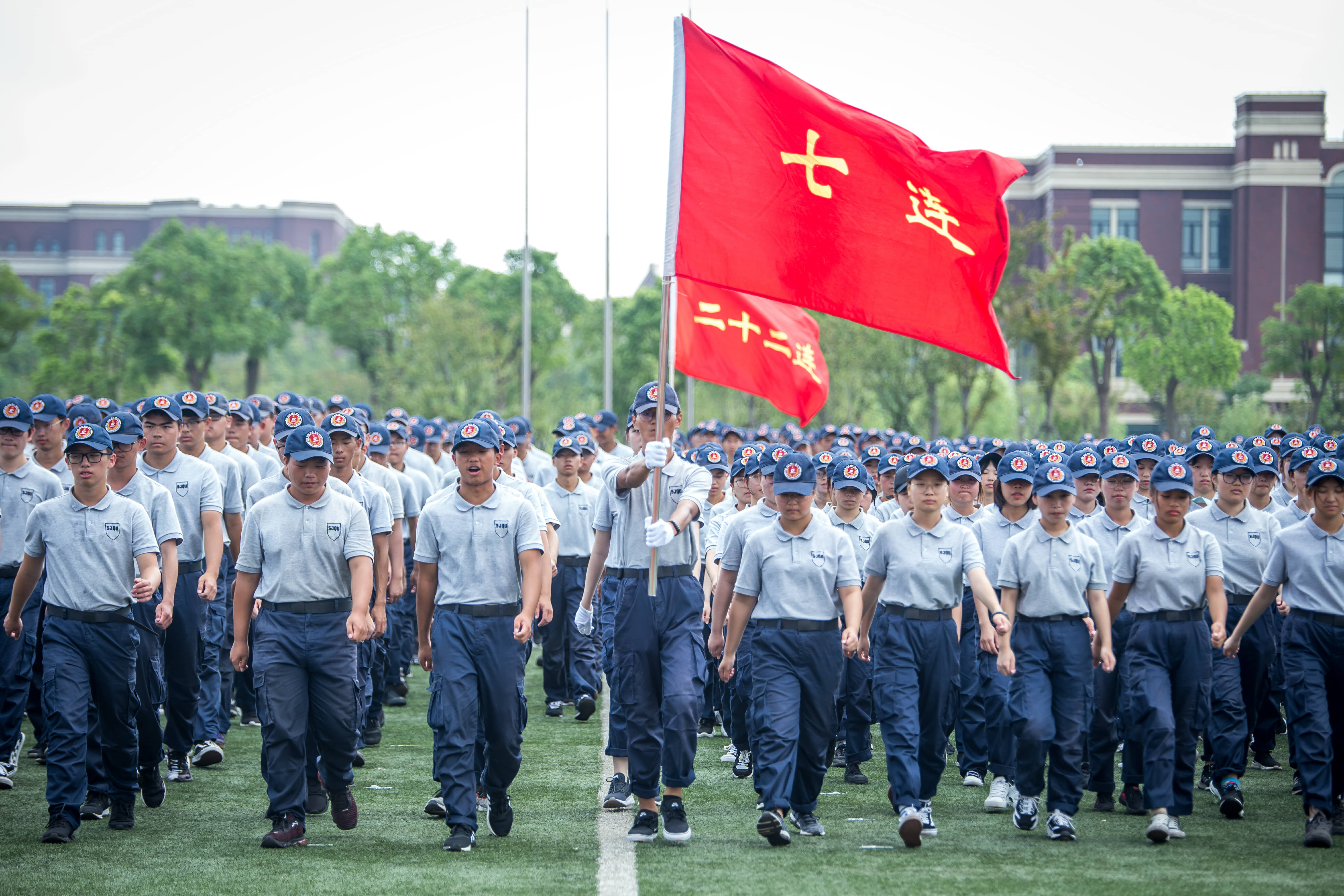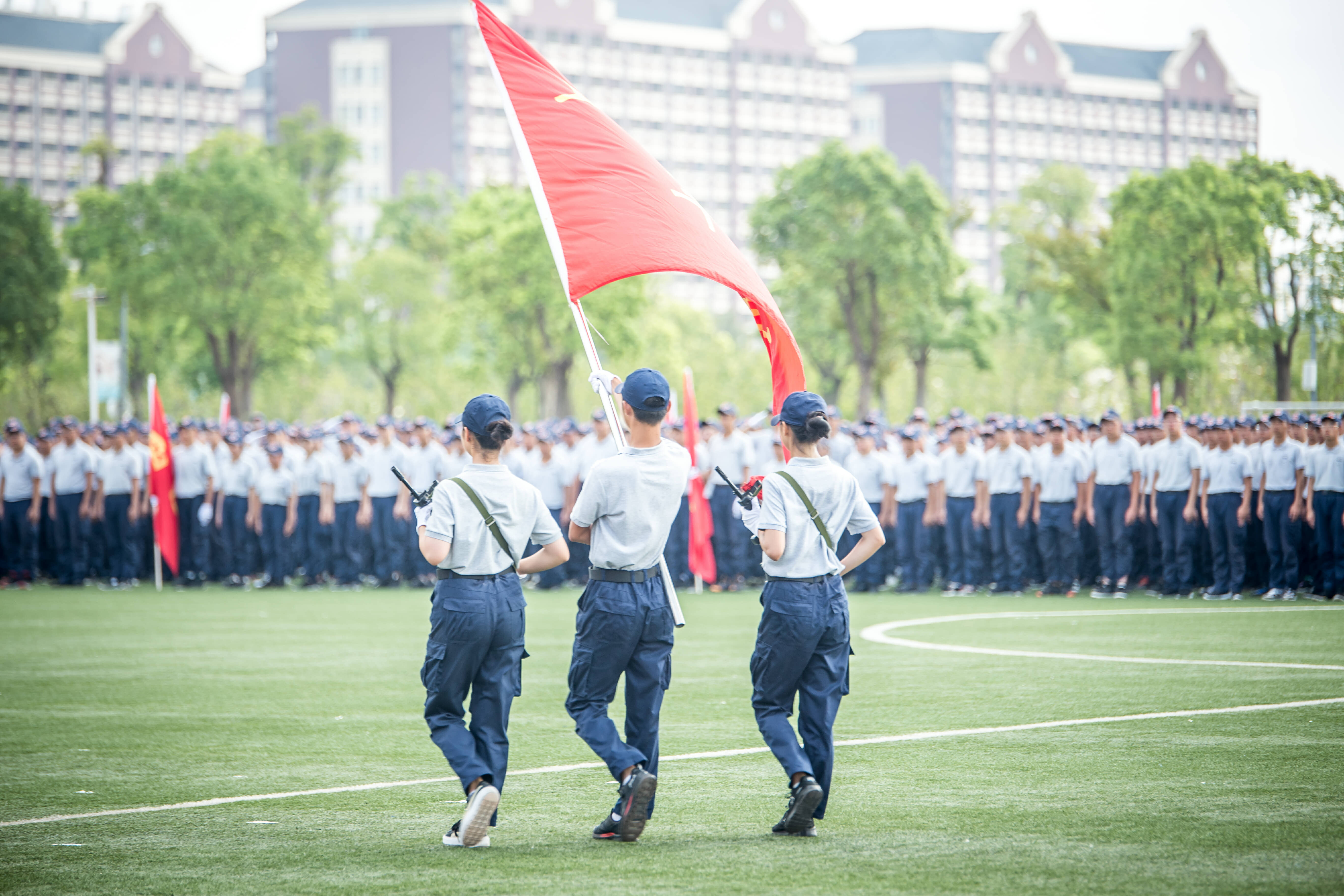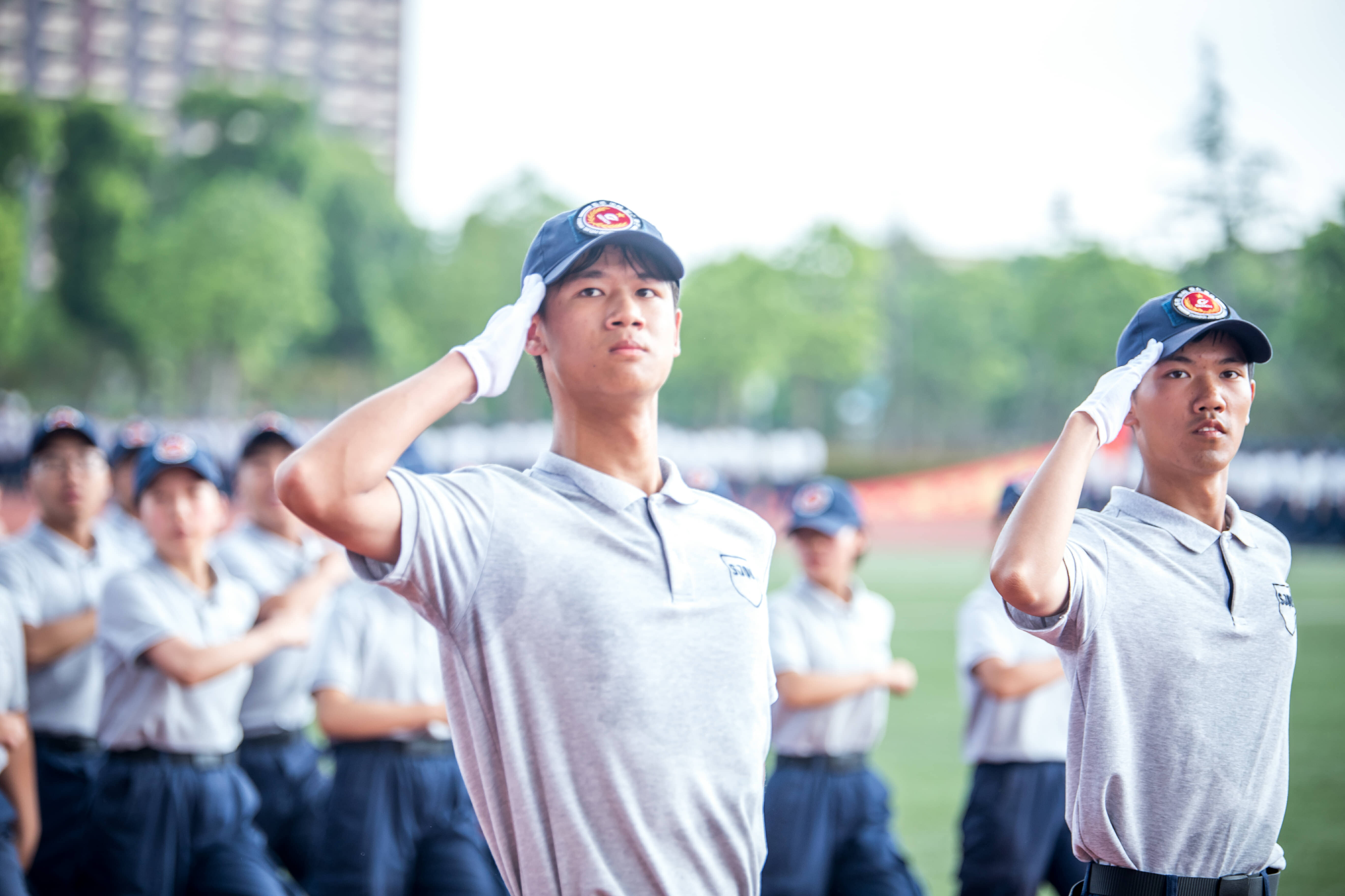 大会在庄严的国歌声中拉开帷幕。首先进行的是迎旅旗仪式,迎旅旗后,校长朱瑞庭宣布阅兵仪式正式开始。标兵就位、分列式,激扬向上的口号,整齐划一的步伐,受检阅方正依次正步从主席台前走过,他们英姿飒爽的身姿,矫健有力的步伐,展现了新时代建桥学子良好的风貌。军训汇报表演环节,学员列式展演军体拳、匕首操,昂扬的斗志、勇猛的气势,展现了军人般的血性虎气。