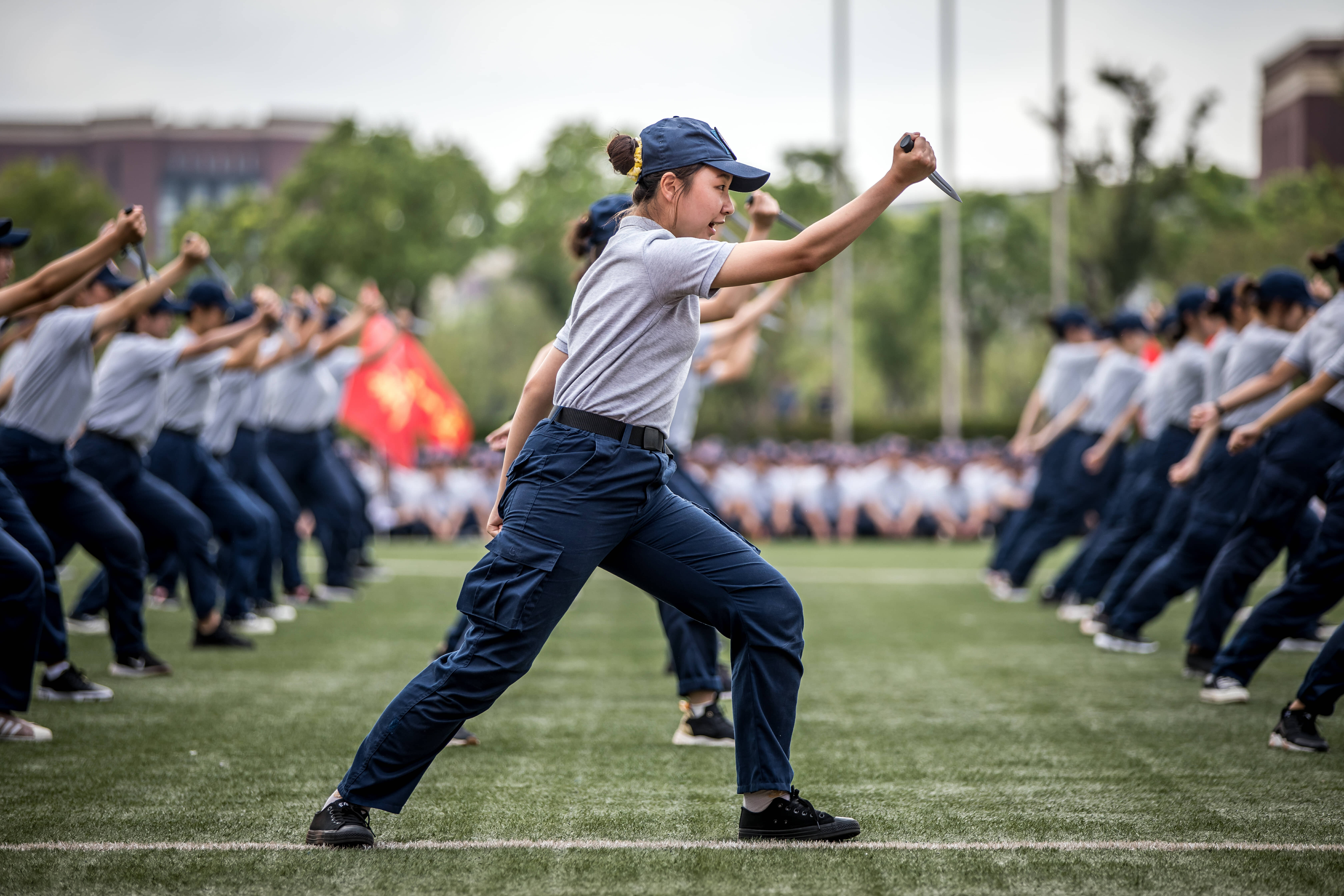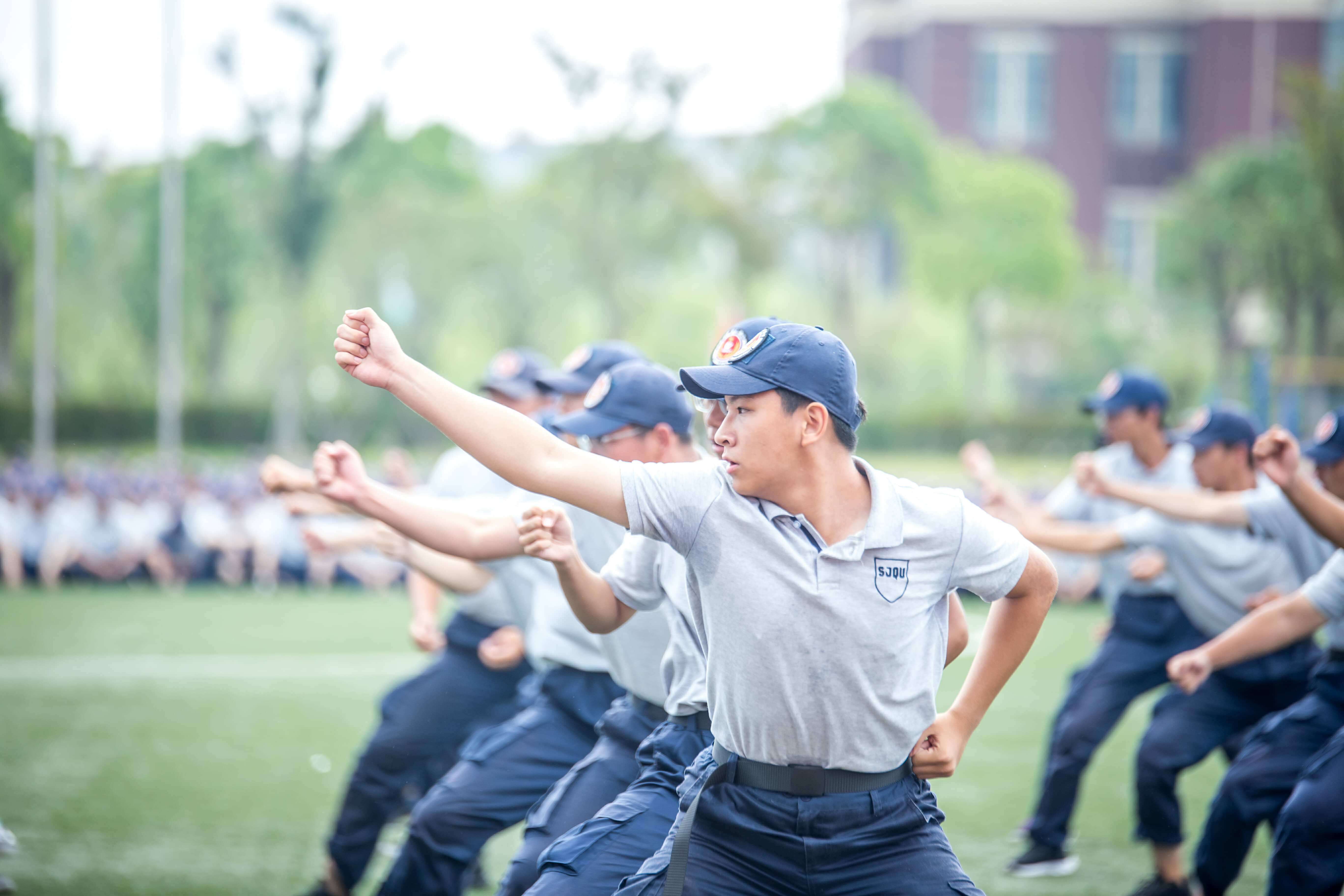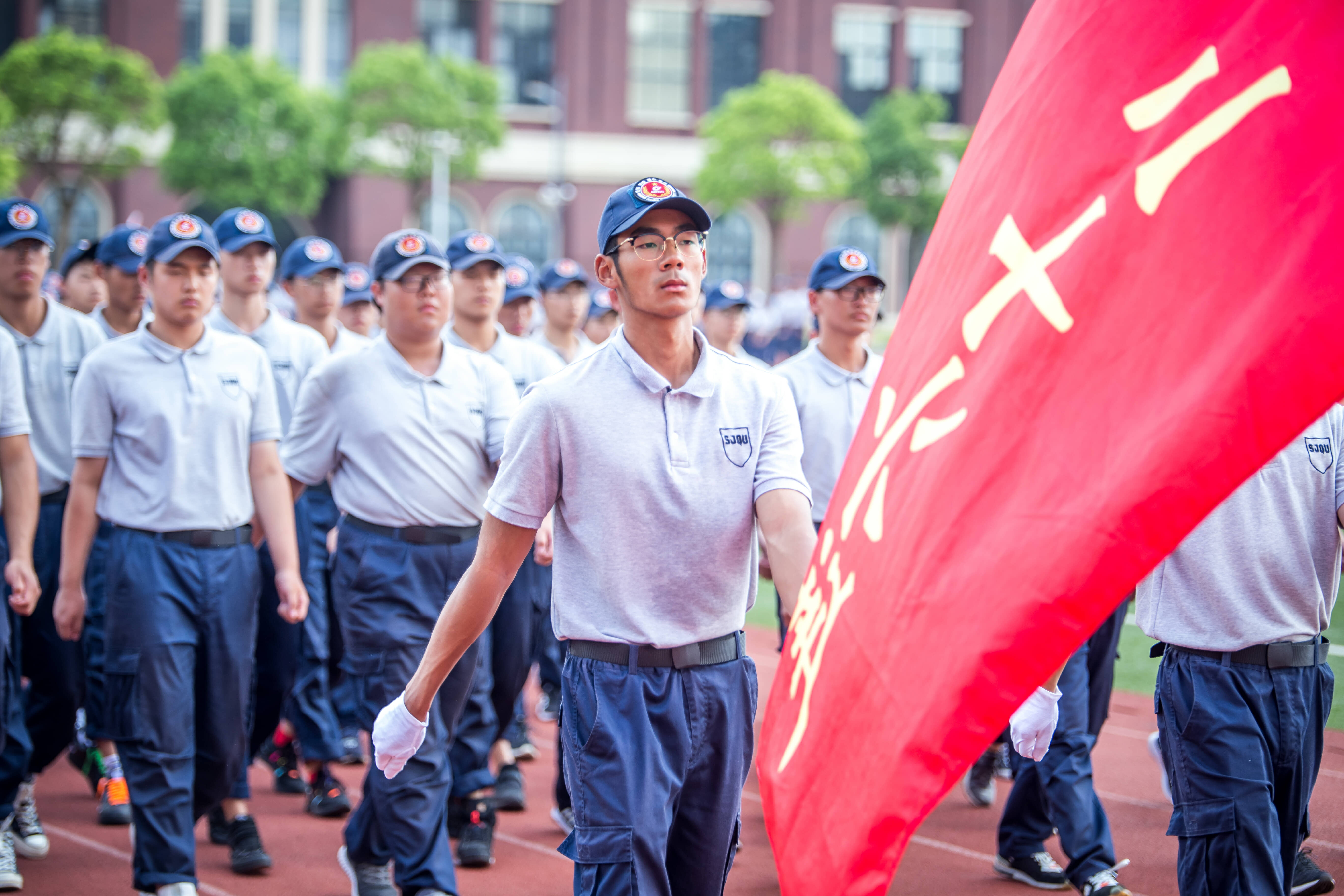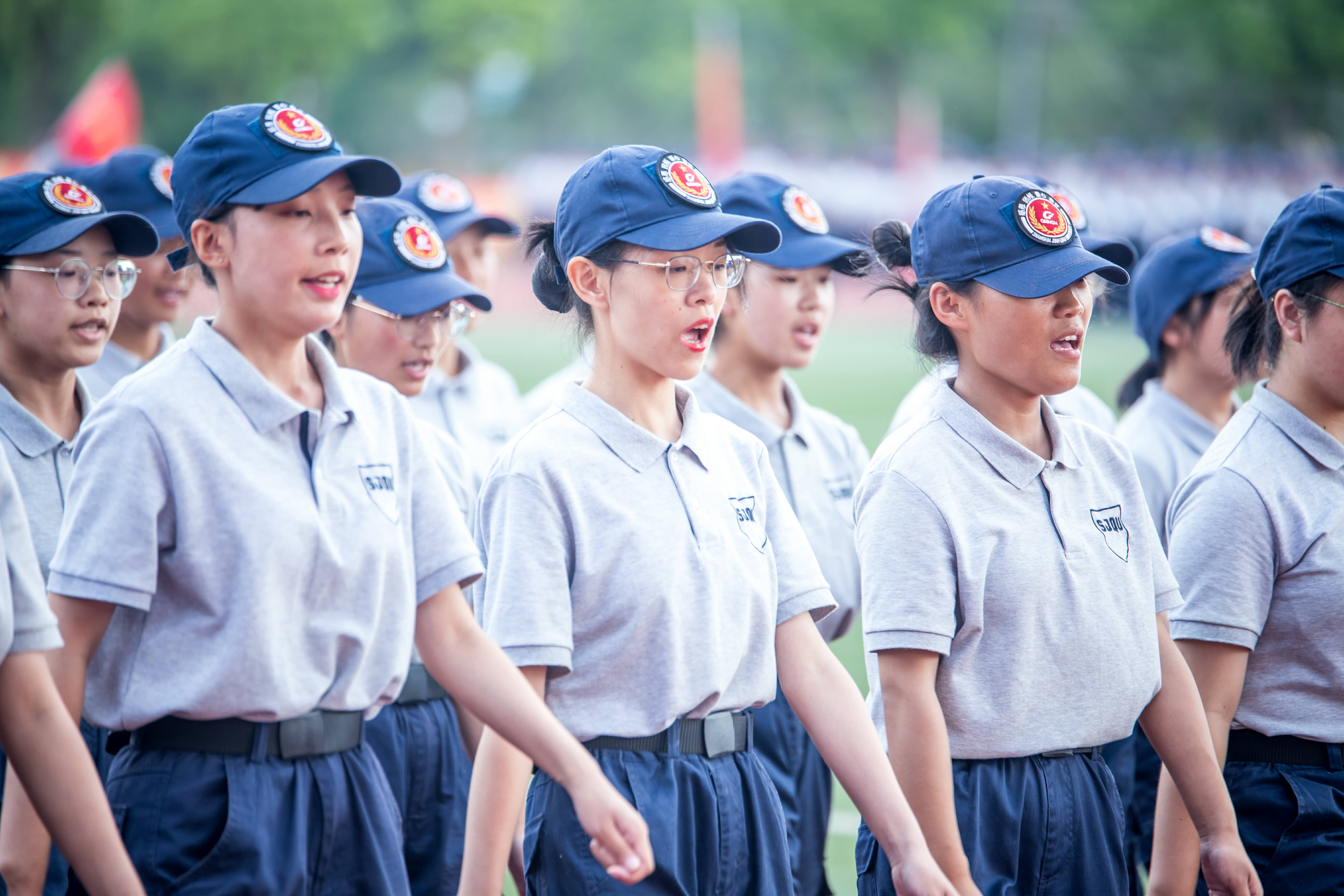 大会在庄严的国歌声中拉开帷幕。首先进行的是迎旅旗仪式,迎旅旗后,校长朱瑞庭宣布阅兵仪式正式开始。标兵就位、分列式,激扬向上的口号,整齐划一的步伐,受检阅方正依次正步从主席台前走过,他们英姿飒爽的身姿,矫健有力的步伐,展现了新时代建桥学子良好的风貌。军训汇报表演环节,学员列式展演军体拳、匕首操,昂扬的斗志、勇猛的气势,展现了军人般的血性虎气。