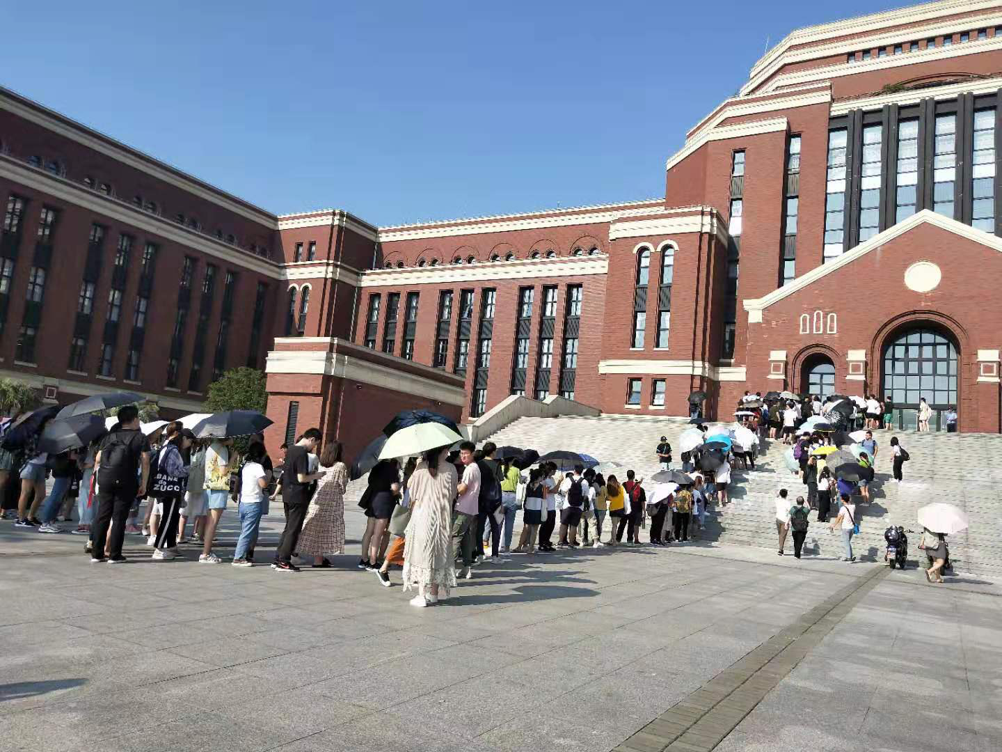 9月9日,在本学期图书馆24小时自修教室固定座位开始发号登记前一晚,热情勤奋的考研同学就提前在图书馆前排起长队领号。