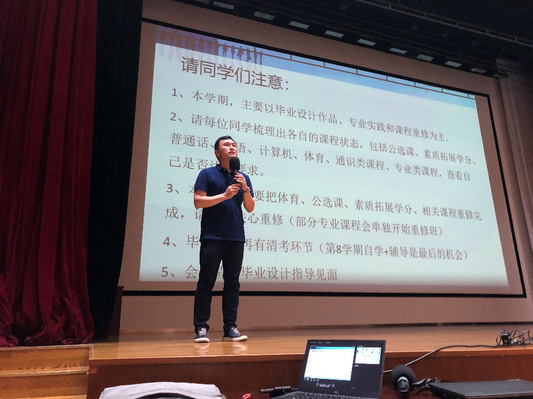 副院长谷伟向毕业生们详细说明了此次毕业设计的进度及各个重要时间节点的要求,并对学生毕业要求和学位要求进行了着重说明。此外,谷伟老师还强调,即使在实习期间,同学们也应以学业为重。