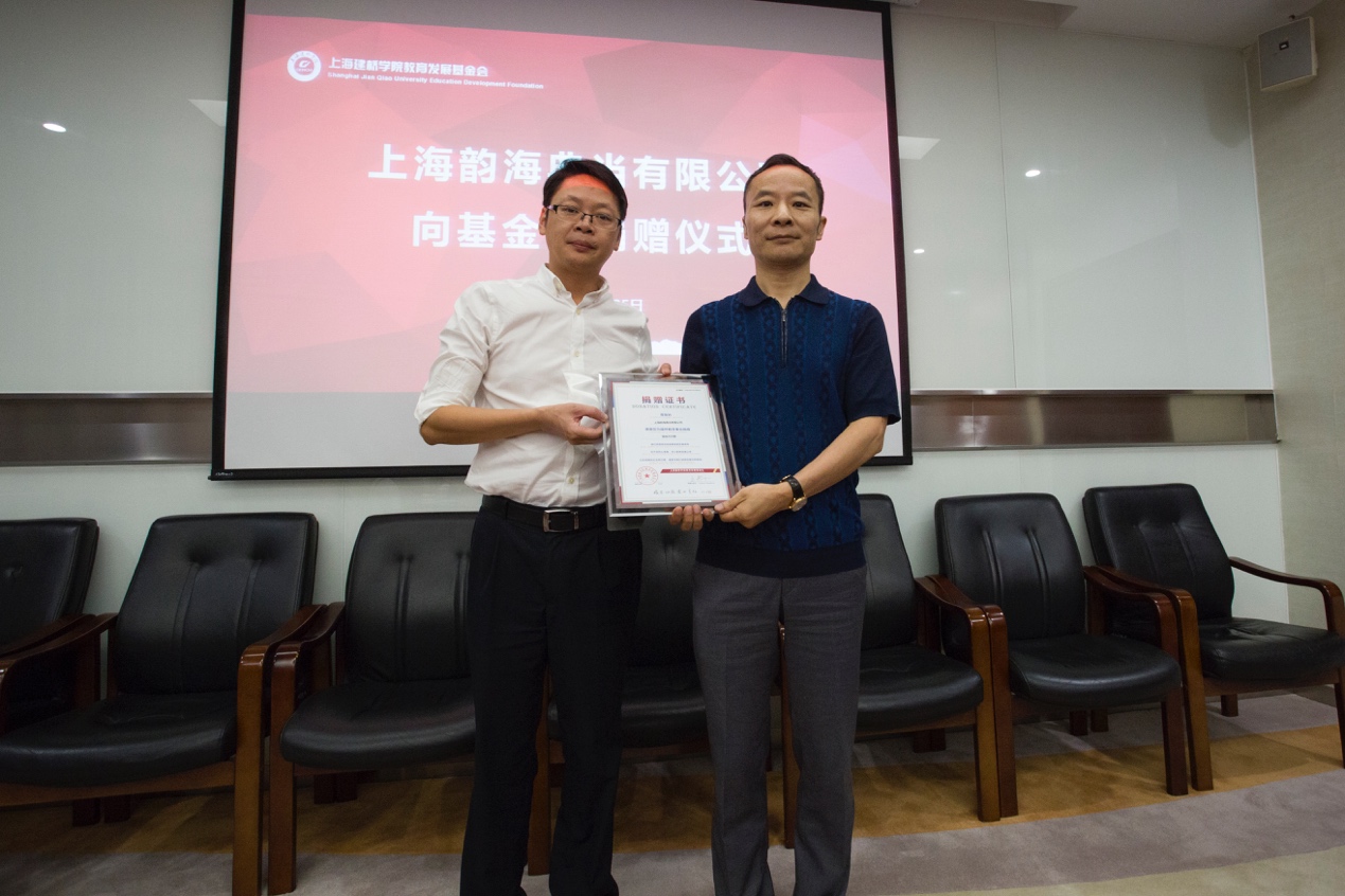 925日下午,“韵海助学金”捐赠仪式在图书馆S417会议室举行。上海韵海典当有限公司董事长顾财明、总经理顾华君,上海建桥学院董事长周星增,上海建桥学院教育发展基金会理事长王邦永、秘书长周琦玢,学生资助中心主任施红霞及受助学生参加了本次签约仪式。仪式由校长助理、学生处处长陈伟主持。