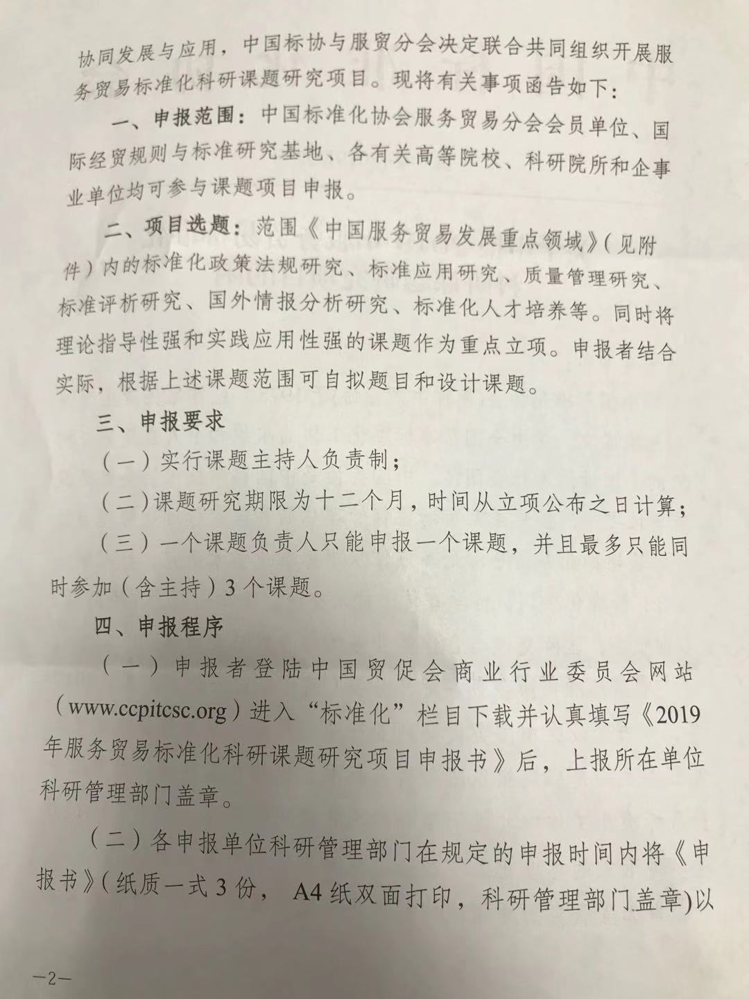 关于申报2018年服务贸易标准化科研课题研究项目的函