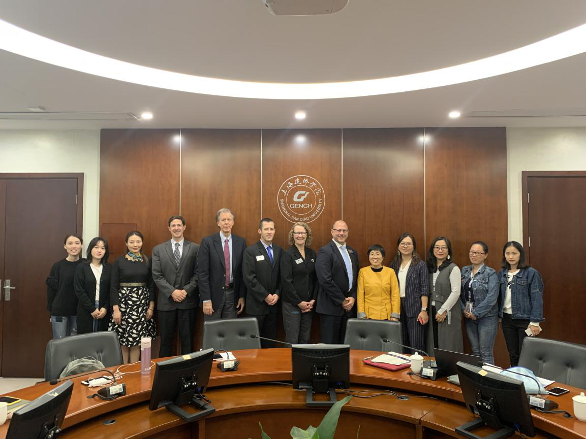 10月17日,由美国协和大学内布拉斯加分校教务长Tim Preuss、教育健康与人文学院院长Lorinda Sankey、国际事务副校长助理David Birber 和国际项目开发评估处处长DAMIAN J. WYMAN 组成的代表团一行访问我校。