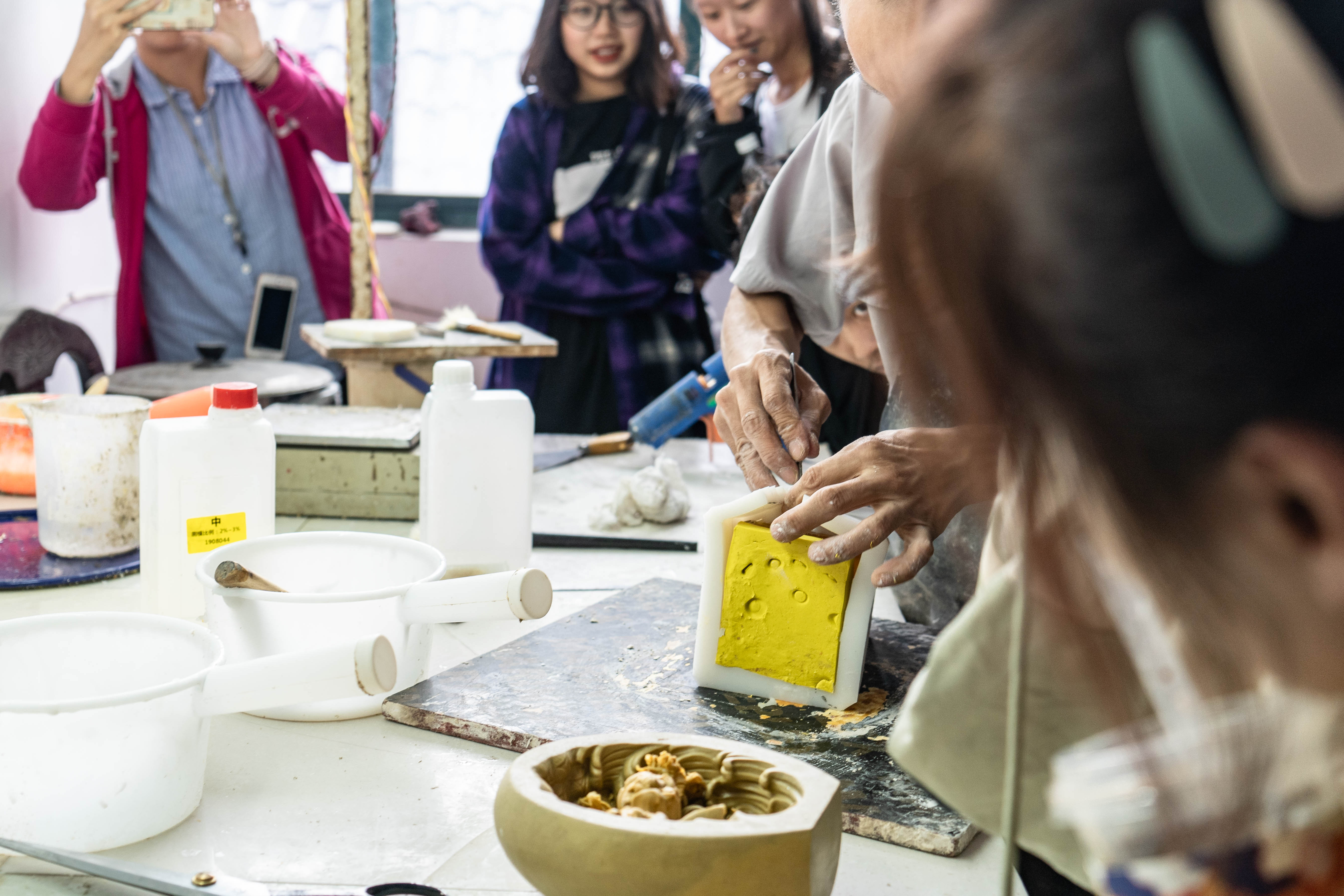 仪式结束后,师生一同参观了琉璃生产加工基地和创新设计展厅,近距离接触琉璃产品的制作加工工艺与生产流程,感受了大伦实业有限公司在校企合作项目中所具备的相关优势和特色。