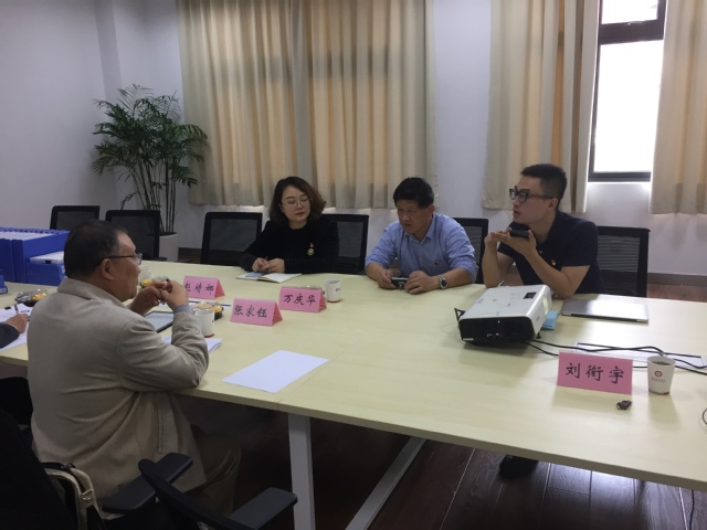 副院长刘衔宇向访谈专家详细介绍了学院的基本情况、专业培养目标、实验室条件、师资队伍、校企合作以及存在的问题。万庆华书记补充汇报了师资队伍和办学条件等方面内容。
