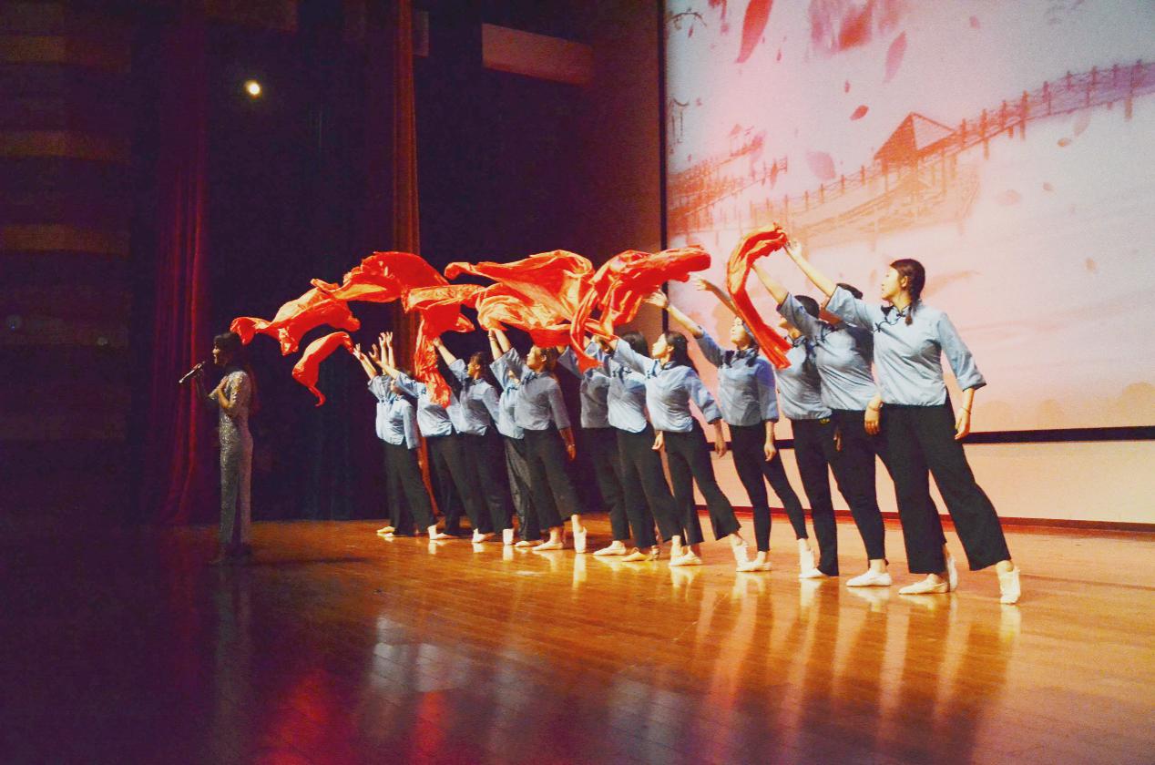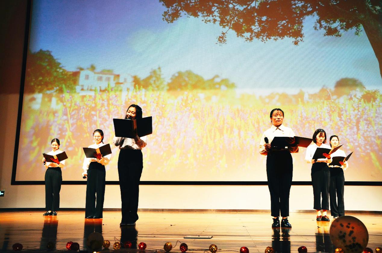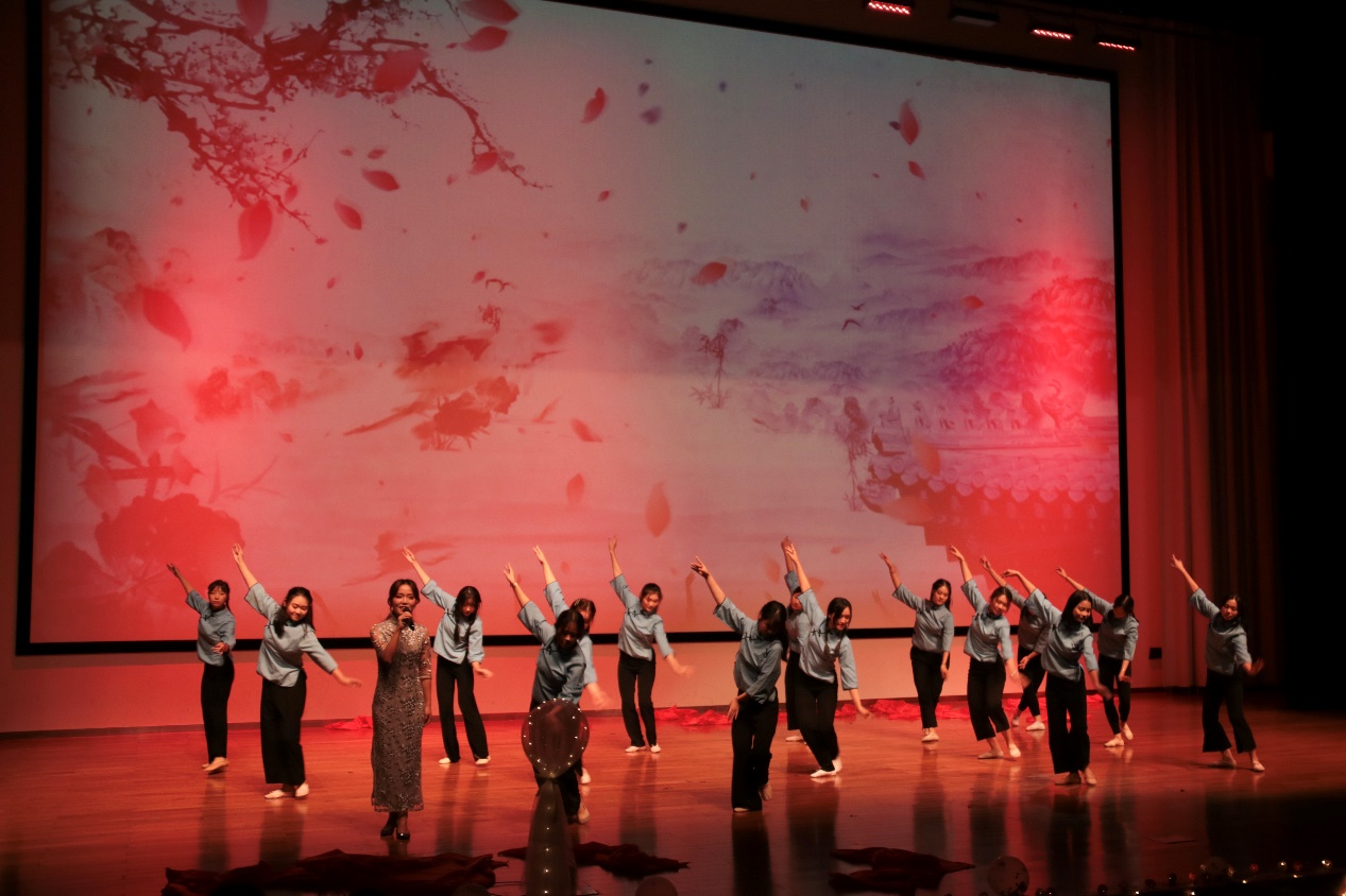 第一篇章“颂青春”,来自2019级新生的歌颂青春展现了我院新生的青春与活力,他们的到来为学院增添了新的色彩。歌声表达了他们决心成为《夜空中最亮的星》,也通过深情的朗诵为同学们重现《长征魂》。在没有战争硝烟的当今社会,我们也不能忘记过去和历史。以《青春伴我同行》,让历史铭记于心。