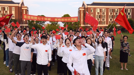 最后,学生党建中心的全体成员为祖国献上一首赞歌《我和我的祖国》,赞美过去七十载里,祖国坚毅成长,无所畏惧;经历大风大浪,始终屹立不倒;一路上披荆斩棘,且歌且行,大家也祝福祖国的明天越来越美好。