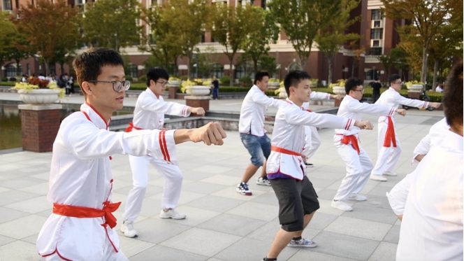 随后,综合协调部和为民服务部的男女生用坚毅的拳头和优雅的舞姿出演《辉煌70载》,为祖国致敬,体现新中国成立70周年来硬实力和软实力不断提升、共同发展。
