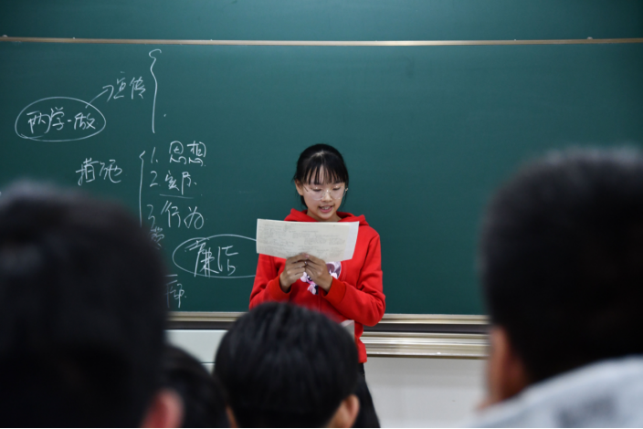 各部门代表进行《习近平关于“不忘初心,牢记使命”论述摘编》的学习分享。函调政审部的吴嘉源、为民服务部的曹韬、综合协调部的潘翠平、学习研讨部的王一帆、研讨部谢紫君,从不同的章节进行了精彩的分析,并结合个人的学习和工作情况,谈了作为学生党员,应该如何服务群众,在同学们中应如何发挥表率作用。其中,学习研讨部谢紫君在分享中,把自学材料的内容进行了归纳总结,并结合个人的工作和自己的理解,清晰明了的给同学们做了理论讲解。