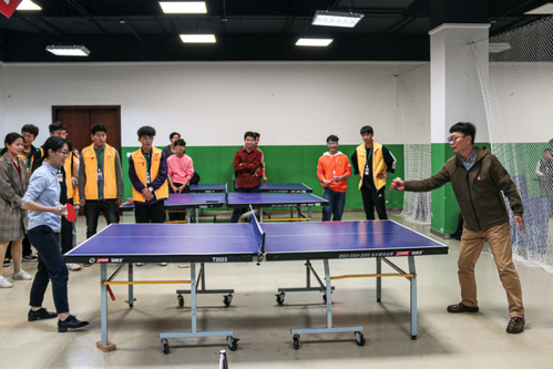 11月14日,为积极响应国家关于“加快体育强国建设,促进全民健身发展”的号召,职业技术学院举办第一届乒乓球大赛。总支书记王加宁、副书记潘明芸出席活动。