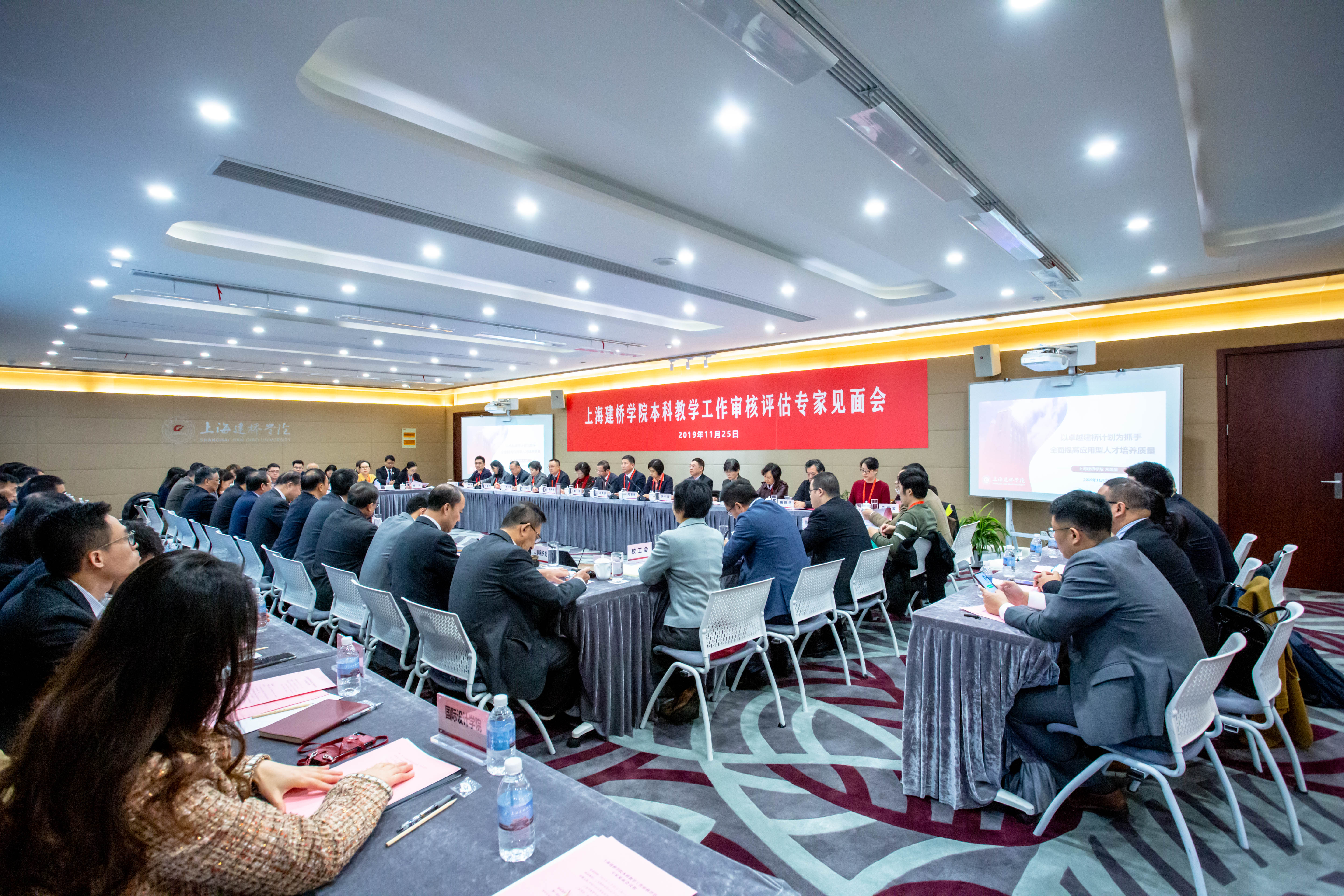 11月25日上午,我校本科教学工作审核评估专家见面会在会议中心M612室举行。市教委副主任毛丽娟出席并讲话。专家组组长、上海海关学院校长丛玉豪教授就审核评估工作进行了说明。我校董事长周星增致欢迎词。校长朱瑞庭作审核评估工作汇报。市教科院院长、市教委高教处处长桑标,专家组组长丛玉豪分别主持一阶段、二阶段会议。