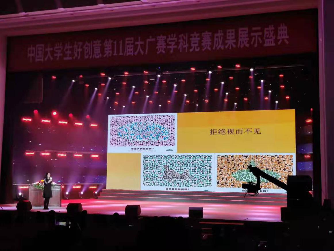 11月23日,第十一届全国大学生广告艺术大赛颁奖典礼在全国政协大礼堂隆重举行。由艺术设计学院罗咪指导、视觉专业17级学生王心怡同学的作品《你是真的色弱吗》荣获一等奖,由张烨老师指导、数艺专业16级学生郎彦凌同学的作品《垃圾分类知多少》荣获二等奖。