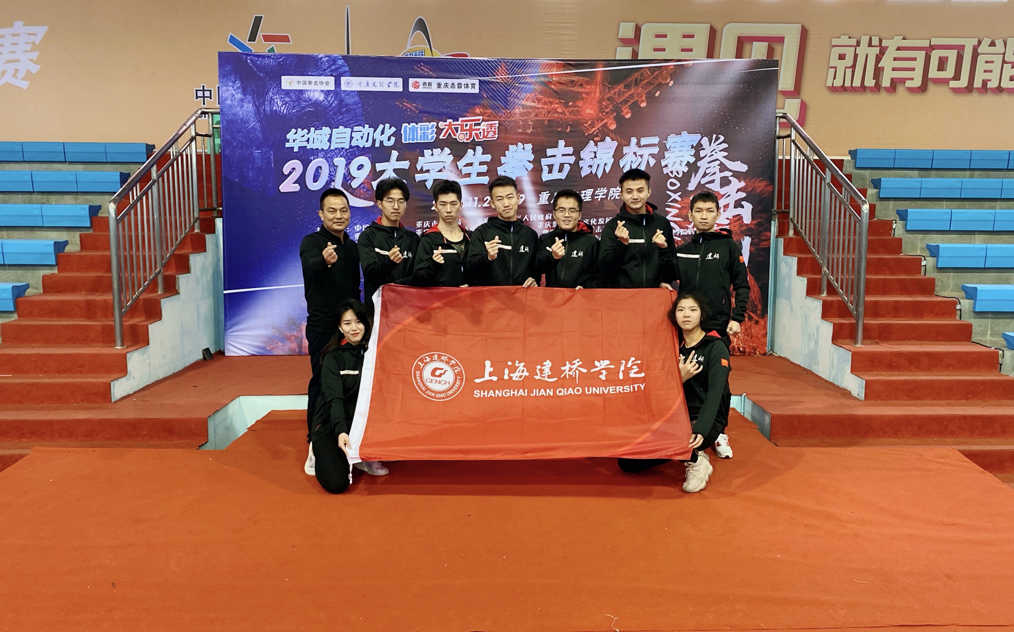 我校参赛队伍由8名运动员组成,肖友定担任教练。8位运动员赛前2个月进行5-8公斤不同程度的降体重,赛前坚持每天大运动量训练和有效控体重。最终,珠宝学院陆佳悦同学获得女子A组(75kg)全国冠军,新闻传播学院史太蔚同学获得男子A组(81KG)季军,高职学院空乘专业李世龙同学获得男子B组(63kg)季军和“优秀运动员”称号,机电学院徐哲师同学获得第五名和“优秀运动员”称号,肖老师获得“优秀教练员”称号,上海建桥学院获得“优秀组织奖”称号。另外,我校还获得女子A组总分第六名和男子B组总分第七名。