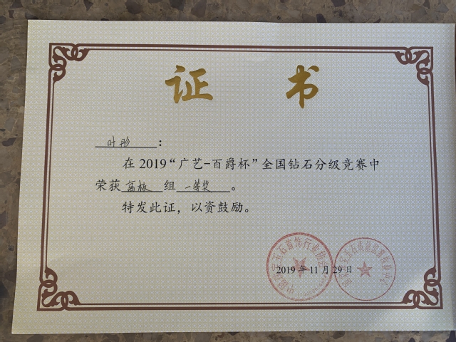 11月28日上午,我校珠宝学院学生在2019年全国高校“广艺——百爵杯”钻石分级竞赛中获得佳绩,获一等奖、二等奖、个人优秀奖各1项,上海建桥学院珠宝学院获团体一等奖,陈征老师荣获“优秀指导教师”,这是我校在国家级宝玉石鉴定专业竞赛上的再次突破。
