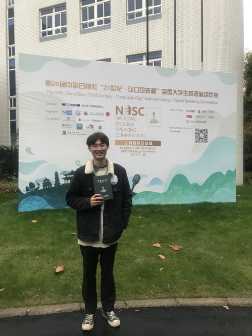 余俊杰同学经过前期的互联网选拔、电话面试等多元化竞赛单元,从500余名选手中脱颖而出,晋级上海市决赛,与上海交大、上海外国语大学等上海市各大高校的30余名选手同台竞技,围绕主题“No person is an island”展开精彩绝伦的演讲,其标准的发音,流畅的观点表达获得了评委的一致好评。