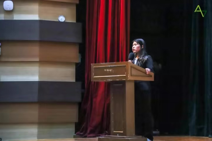 总结大会最后,杨拂晓上台做总结发言。她表示,团学是一个有温度的紧密连接的大家庭,她鼓励新部长和新部员们不忘初心、坚持梦想,充实自己的大学生活,为自己的人生添上绚烂的一笔色彩。