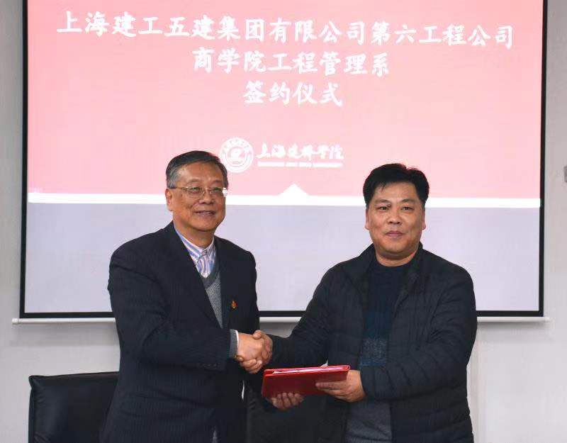 12月24日下午,商学院与上海建工五建六公司签订校企合作协议。副校长周健儿、教务处副处长徐磊,商学院领导高健、周英芬、王晨岑,上海建工五建工会副主席、人力资源部副总经理、组织科副科长刘炯,六公司党总支书记凌利福等出席仪式。