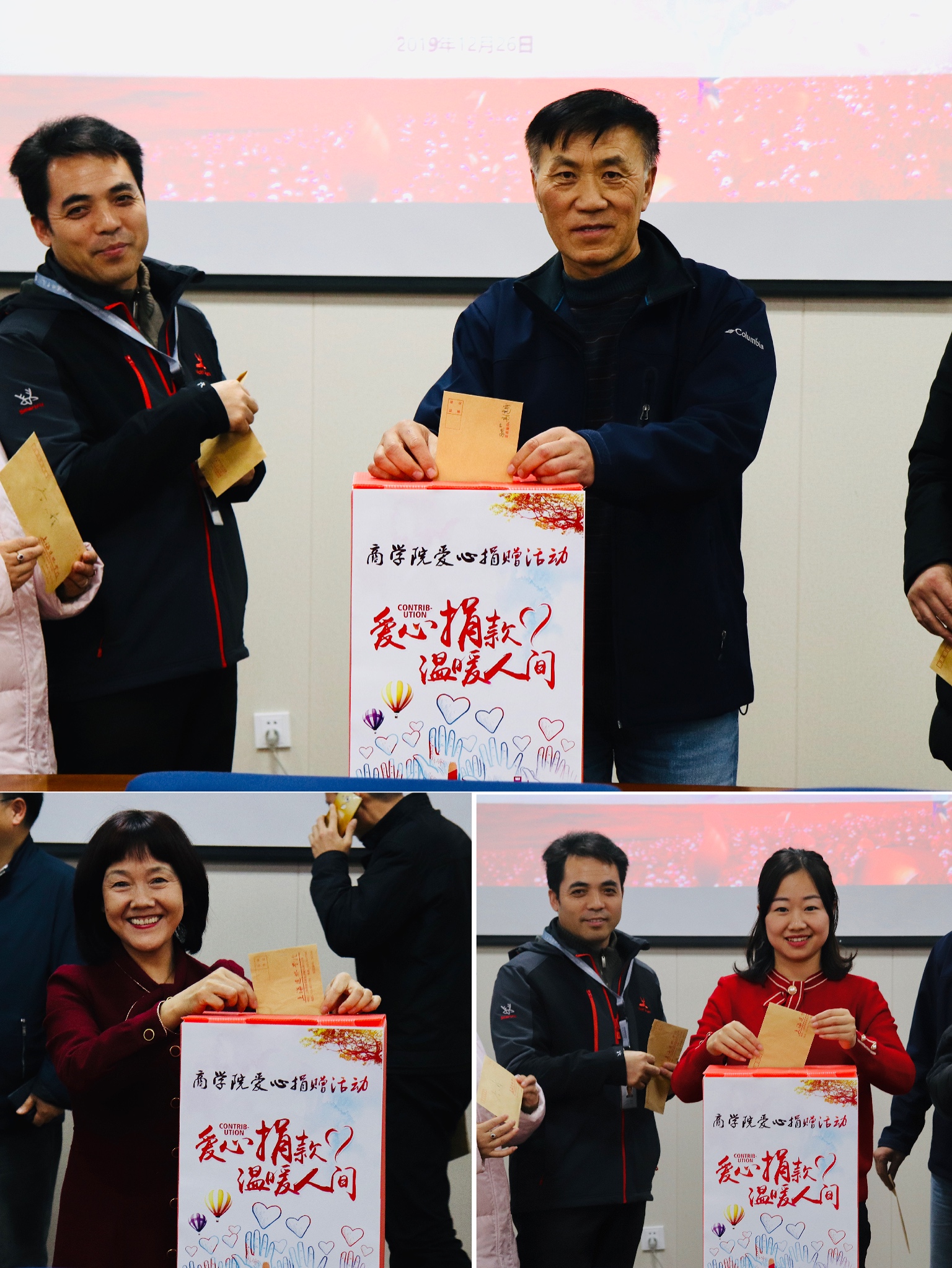 12月26日下午,为践行 “感恩、回报、爱心、责任”的校训和雷锋精神,商学院组织了“爱心捐款 温暖人间”募捐活动。