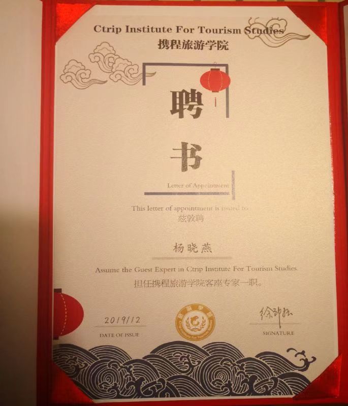 近日,携程旅游学院召开了 “深入产教融合,聚焦职业教育——旅游业人才培养的创新与实践”年度会议。会议期间,来自上海、北京、广东等多位高校专家及携程旅游学院院长徐郅耘围绕主题进行了热烈的讨论。我校商学院旅游管理系杨晓燕老师受邀在大数据运用、教学软件开发、专业人才培养方向等方面作了主题发言;并获得了携程旅游学院为来自旅游行业、旅游院校的骨干人才颁发的“携程旅游学院客座专家”聘书。