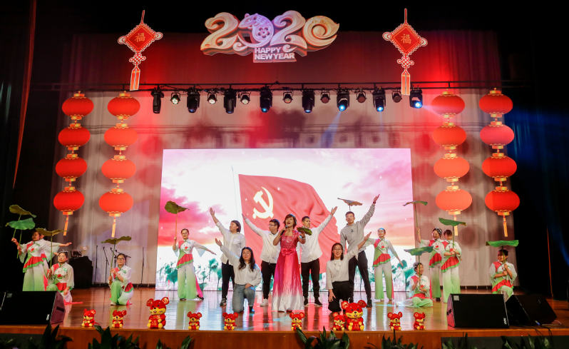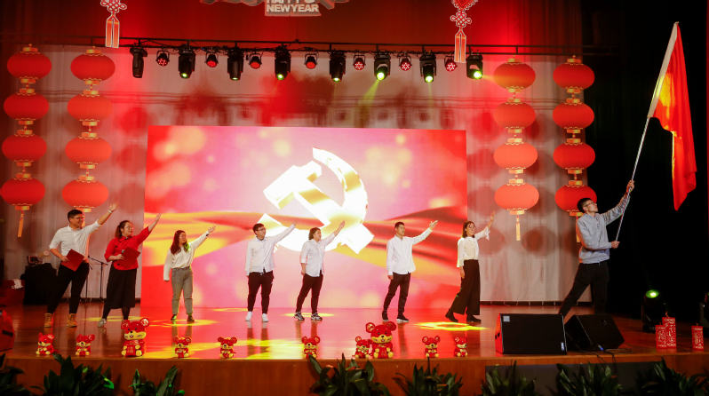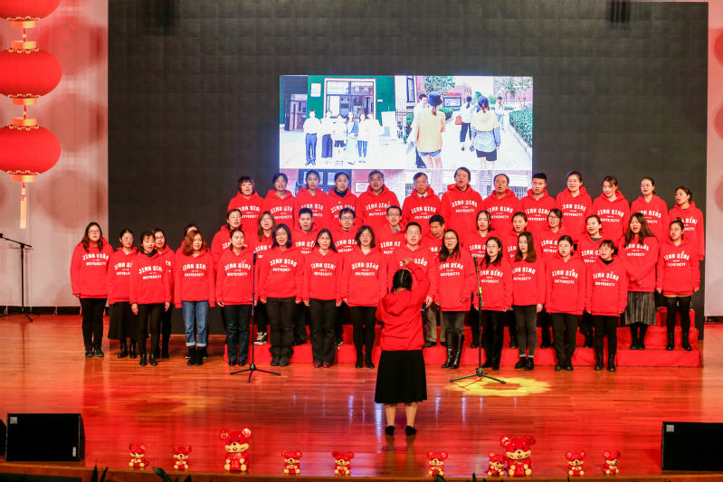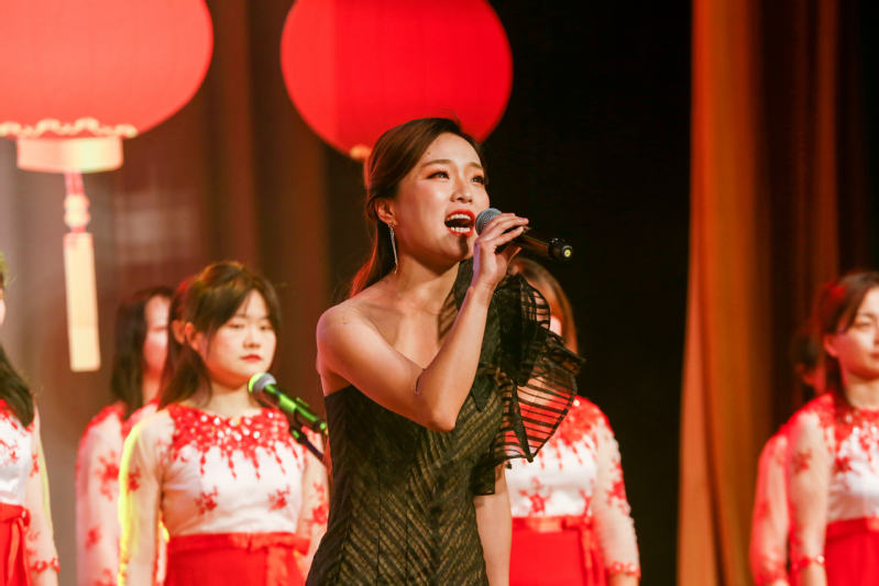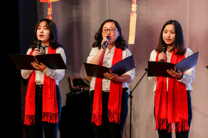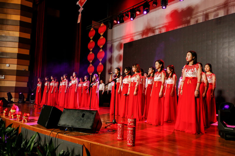(联欢会最后,外国语学院带来大合唱《我和我的祖国》,表达拳拳爱国心。)
