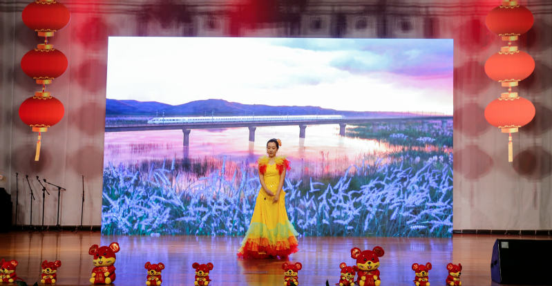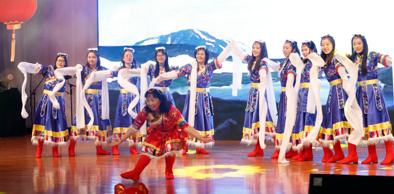 (机电学院带来群舞《天路》,表达对祖国发展日日新的美好祝福。)