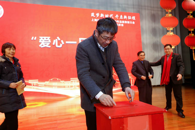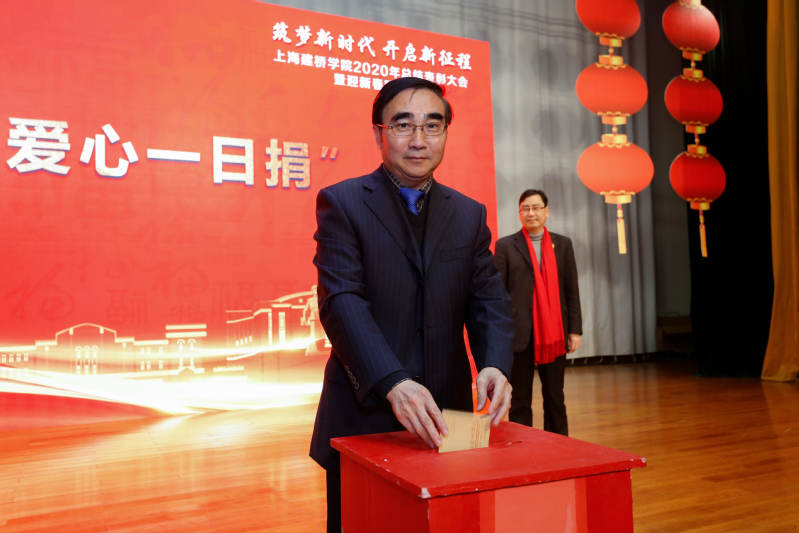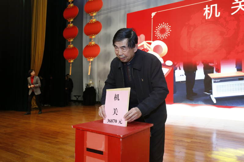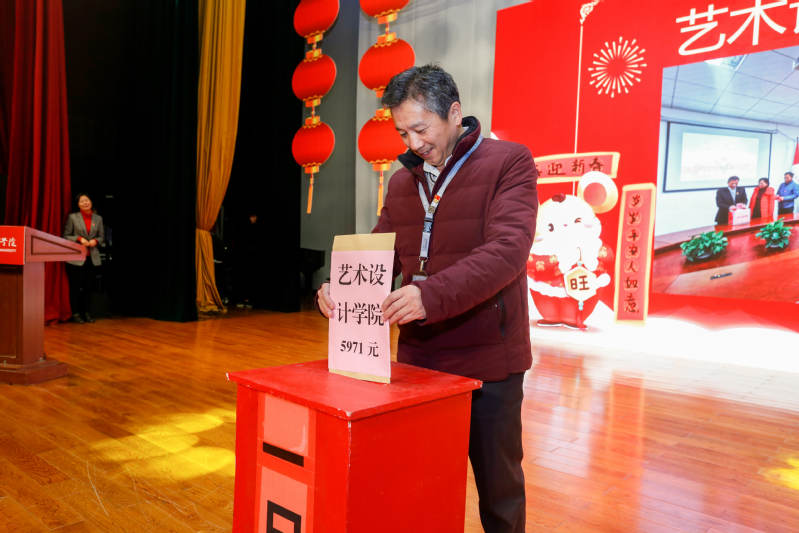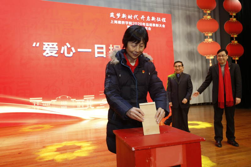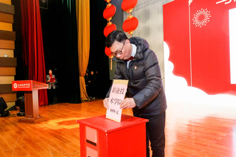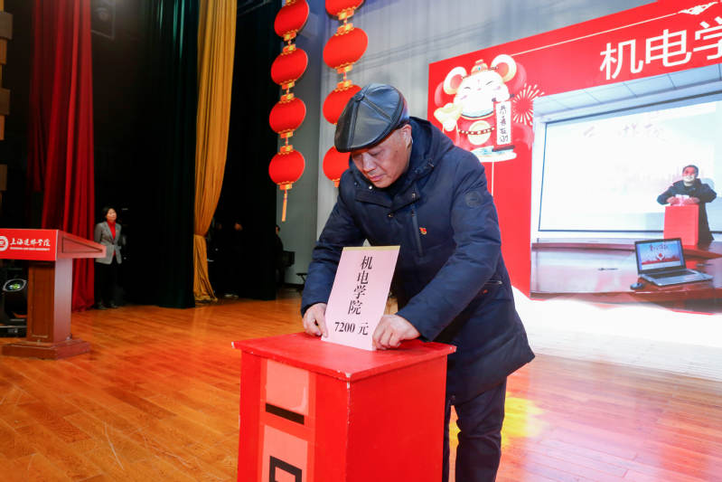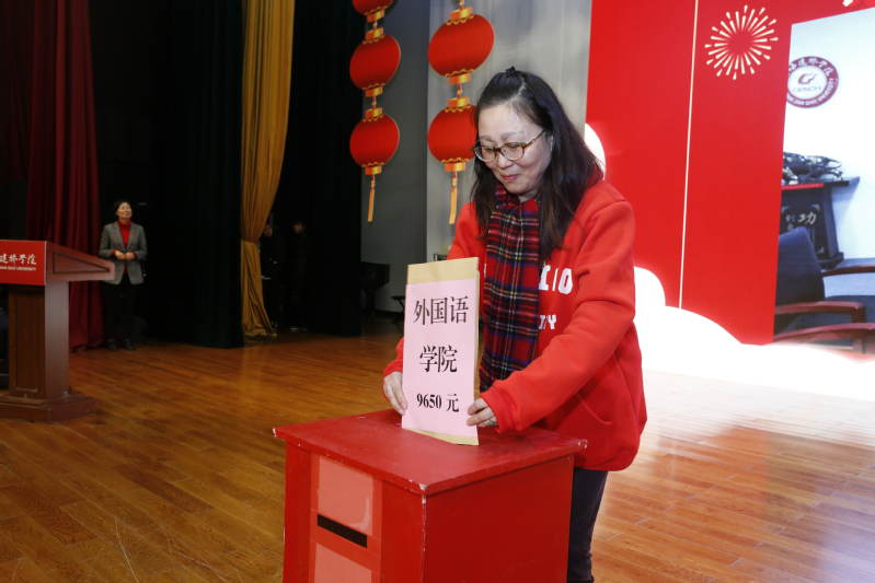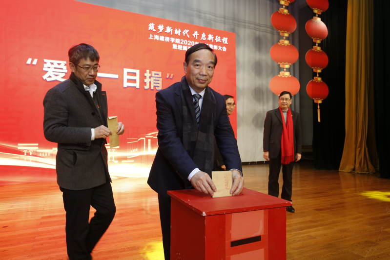 会议现场进行了“爱心一日捐”捐赠仪式。校领导、各二级单位党委书记(总支书记)依次上台捐赠。全校教职工慷慨解囊、踊跃奉献爱心,截至当天已募集善款12万余元。