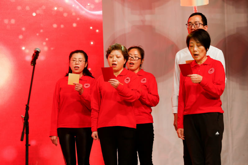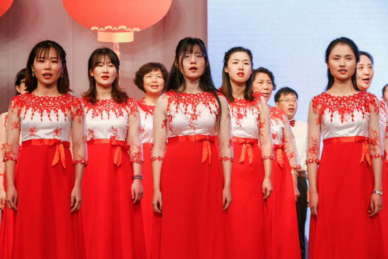 (机关四工会朗诵和合唱节目《我们走在大路上》,讴歌一代代中华儿女在建设社会主义大路上大步向前的豪迈气概。)