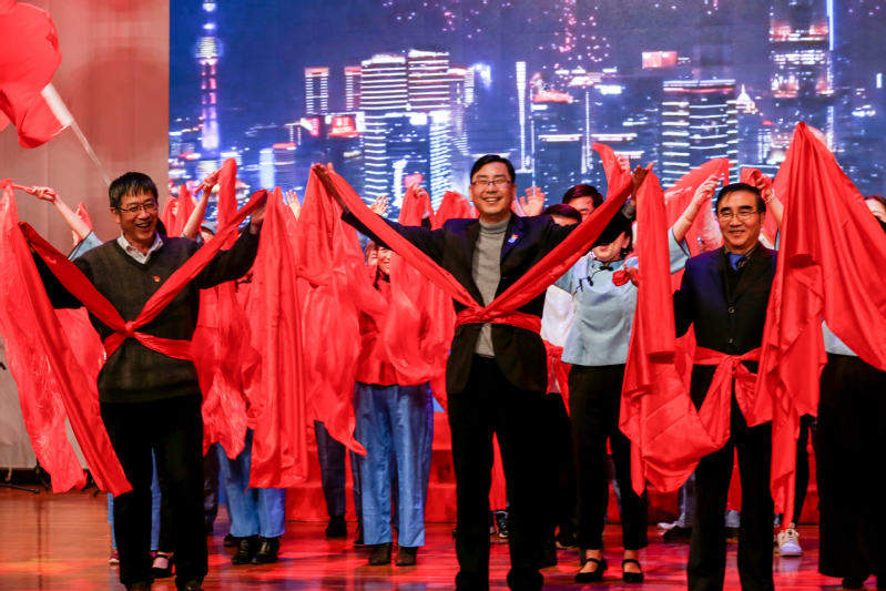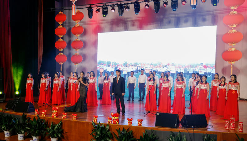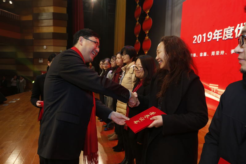 1月10日上午,我校“筑梦新时代 开启新征程”2020年总结表彰大会暨迎新春联欢会在大礼堂举行。校长朱瑞庭,董事杨俊和,副校长郑祥展,党委副书记、纪委书记夏雨,副校长俞晓光,副校长陈伟,决策咨询委员会常务副主任蒋威宜出席,与全体教职工欢聚一堂,共庆新春。